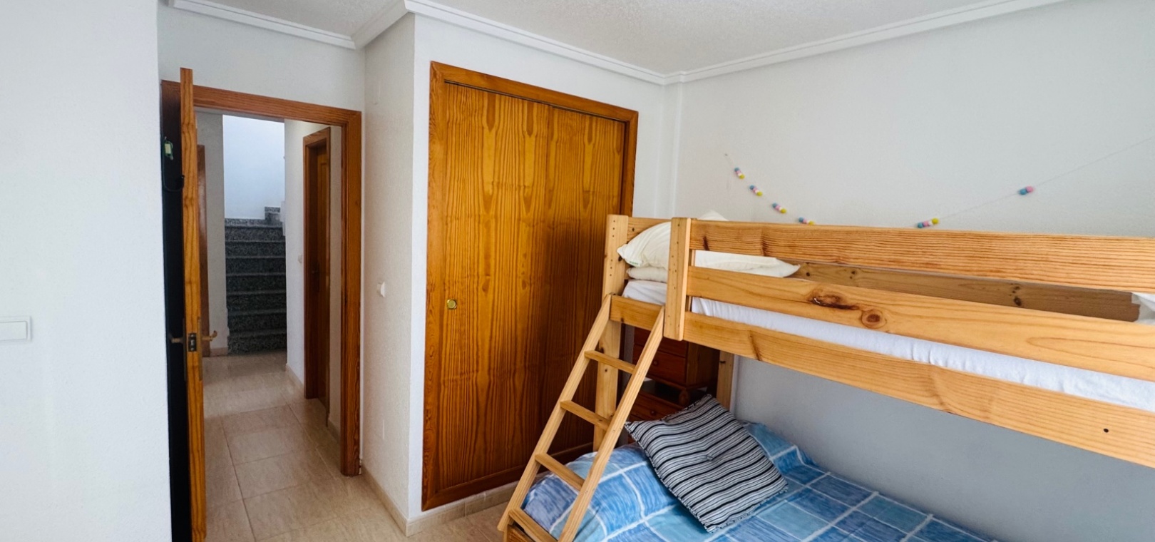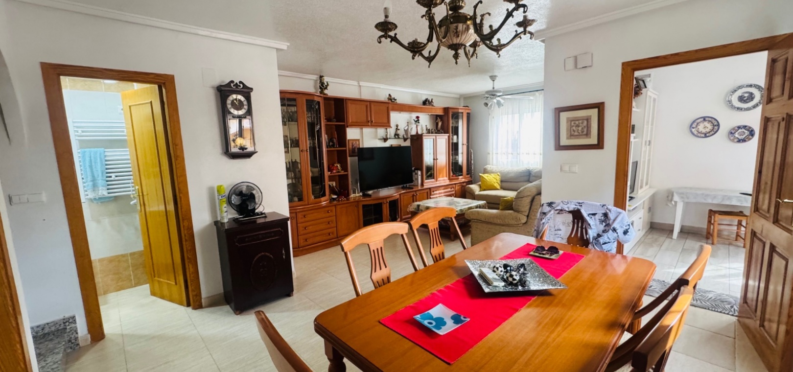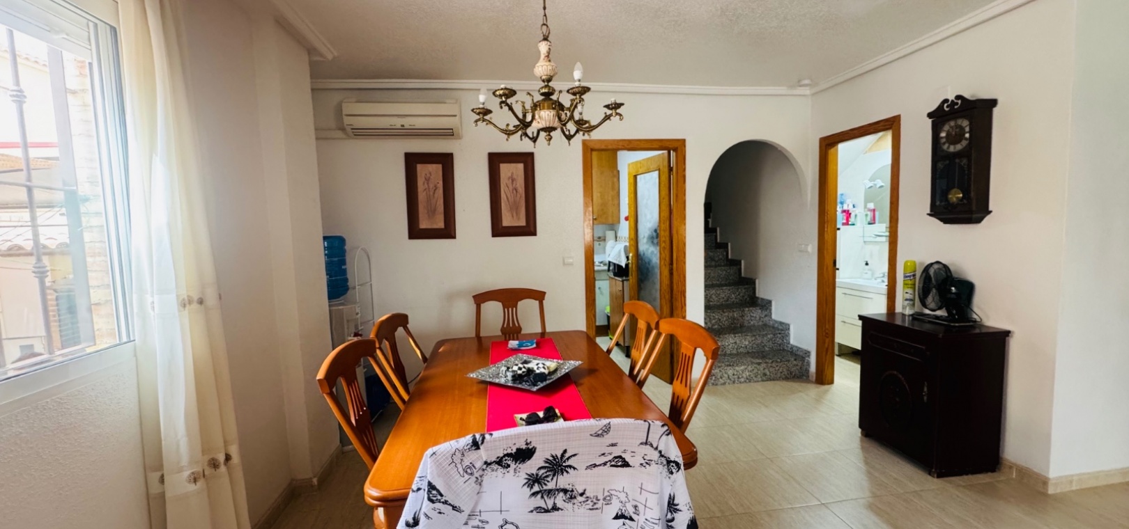 Située dans le quartier résidentiel très prisé de Lo Marabu, à Ciudad Quesada, cette jolie maison quadruple allie confort, commodité et facilité d'entretien. À seulement 5 minutes à pied de toutes les commodités, dont des supermarchés (Tesco, Consum, Aldi), des bars et des restaurants, et à seulement 15 minutes du centre-ville animé, la propriété bénéficie d'un emplacement idéal pour une résidence principale ou secondaire. Au rez-de-chaussée, la propriété comprend une pièce supplémentaire confortable servant actuellement de salon et de télévision, un salon-salle à manger lumineux et ouvert, une cuisine indépendante entièrement équipée (avec possibilité d'ouverture sur le salon) et une salle de douche complète. Le premier étage comprend trois chambres doubles avec placards intégrés et une salle de bain familiale complète. De là, un escalier mène au solarium privé sur le toit, doté d'espaces de rangement pratiques et de nombreux espaces pour bronzer ou se détendre. À l'extérieur, la maison dispose d'un parking hors voirie, d'une grande terrasse carrelée facile d'entretien, d'un espace couvert avec cuisine extérieure et de nombreux espaces pour profiter du soleil espagnol et des repas en plein air. Au sein d'une résidence soignée, les résidents bénéficient également de deux belles piscines communes, idéales pour se rafraîchir lors des chaudes journées d'été. Cette propriété constitue une excellente opportunité pour ceux qui recherchent une maison familiale, une résidence secondaire ou un investissement dans l'un des quartiers les plus prisés de Ciudad Quesada.