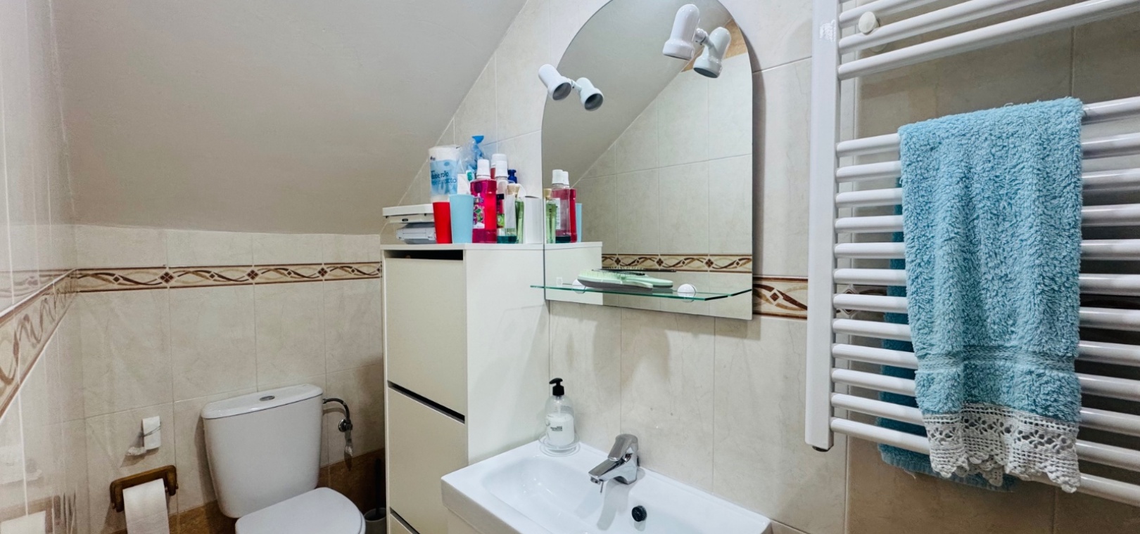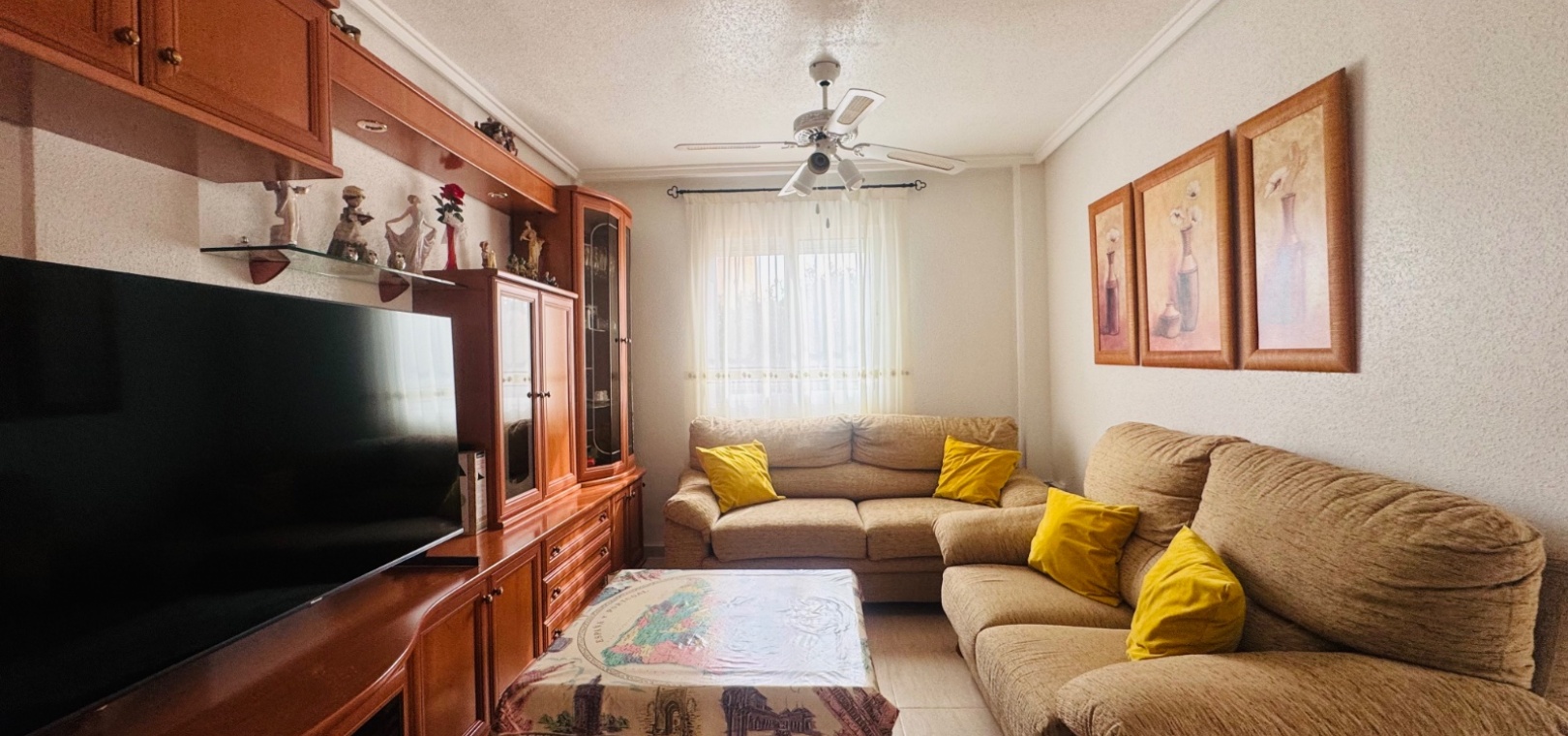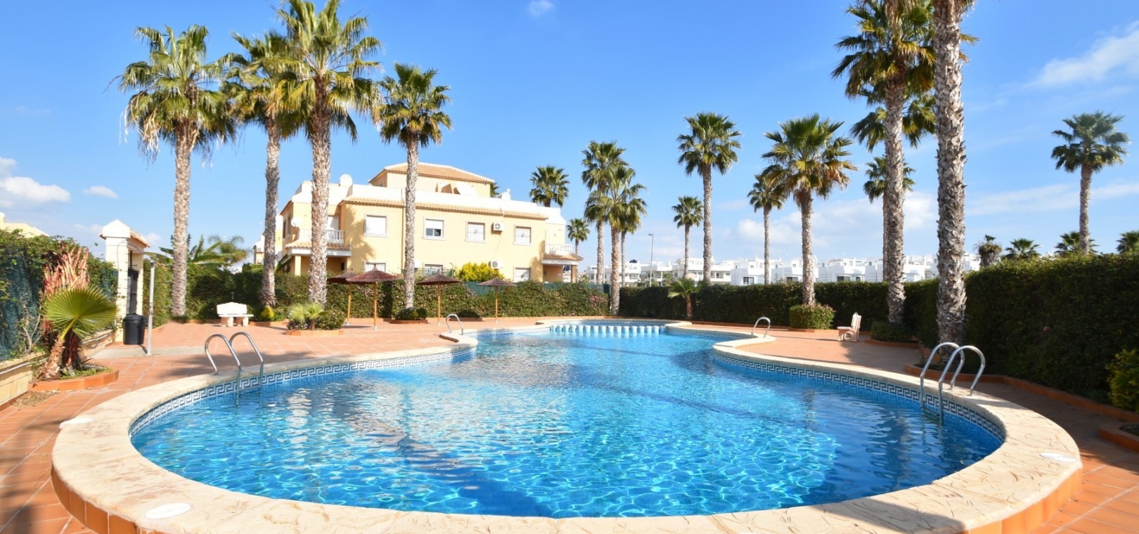 Située dans le quartier résidentiel très prisé de Lo Marabu, à Ciudad Quesada, cette jolie maison quadruple allie confort, commodité et facilité d'entretien. À seulement 5 minutes à pied de toutes les commodités, dont des supermarchés (Tesco, Consum, Aldi), des bars et des restaurants, et à seulement 15 minutes du centre-ville animé, la propriété bénéficie d'un emplacement idéal pour une résidence principale ou secondaire. Au rez-de-chaussée, la propriété comprend une pièce supplémentaire confortable servant actuellement de salon et de télévision, un salon-salle à manger lumineux et ouvert, une cuisine indépendante entièrement équipée (avec possibilité d'ouverture sur le salon) et une salle de douche complète. Le premier étage comprend trois chambres doubles avec placards intégrés et une salle de bain familiale complète. De là, un escalier mène au solarium privé sur le toit, doté d'espaces de rangement pratiques et de nombreux espaces pour bronzer ou se détendre. À l'extérieur, la maison dispose d'un parking hors voirie, d'une grande terrasse carrelée facile d'entretien, d'un espace couvert avec cuisine extérieure et de nombreux espaces pour profiter du soleil espagnol et des repas en plein air. Au sein d'une résidence soignée, les résidents bénéficient également de deux belles piscines communes, idéales pour se rafraîchir lors des chaudes journées d'été. Cette propriété constitue une excellente opportunité pour ceux qui recherchent une maison familiale, une résidence secondaire ou un investissement dans l'un des quartiers les plus prisés de Ciudad Quesada.