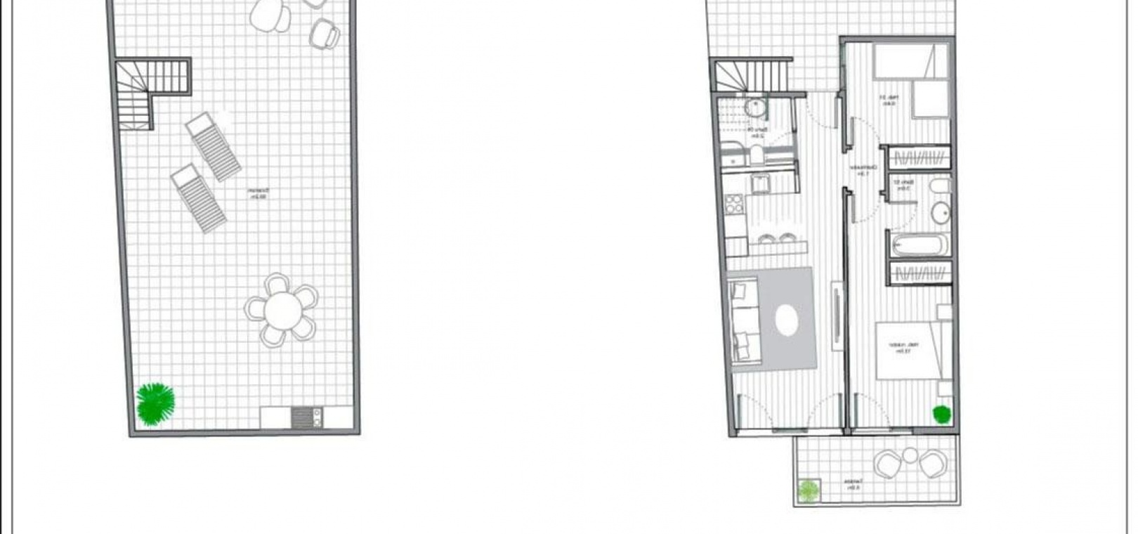 Surface construite : 148 m² Séjour et salle à manger ouverts avec cuisine américaine 2 chambres doubles et 2 salles de bains Balcon donnant sur le salon avec vue dégagée Terrasse privée sur le toit avec vue sur la mer Piscine commune et jardins paysagers Place de parking privée et numérotée au sein d'un complexe résidentiel fermé