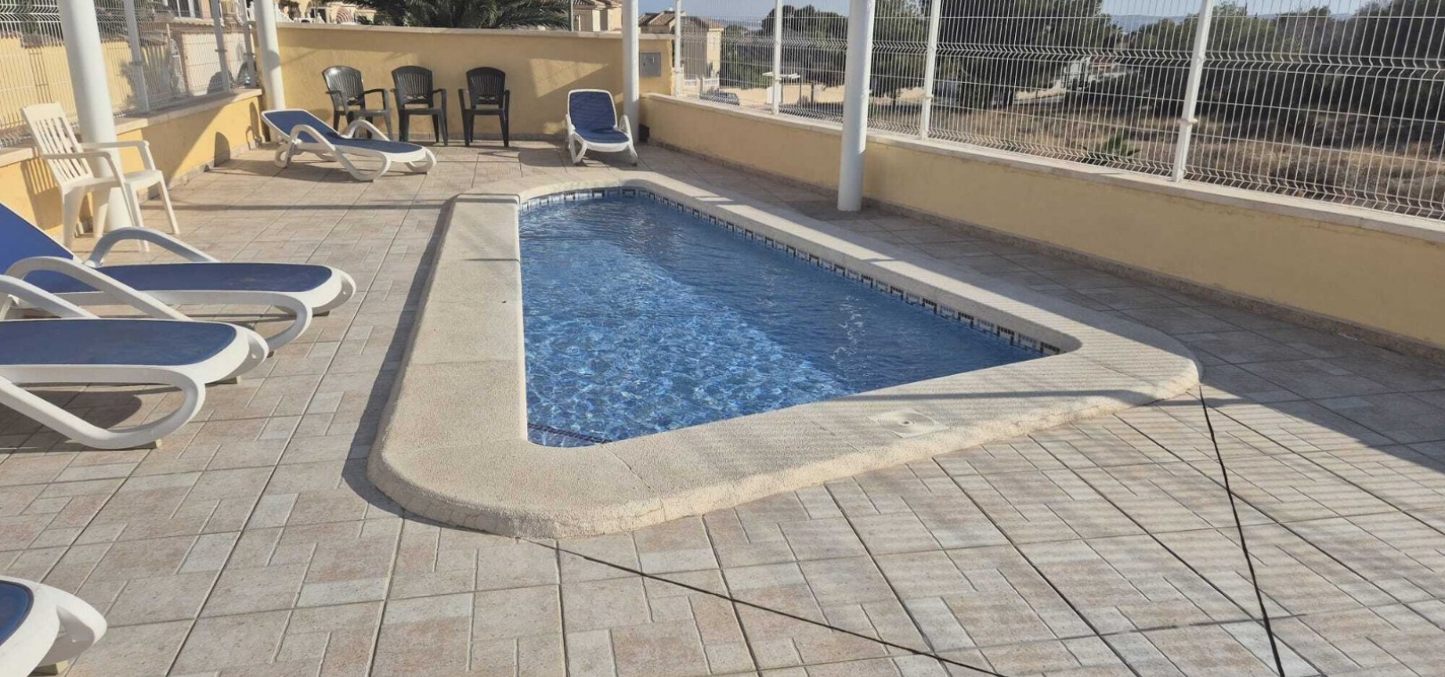 Cette charmante villa individuelle de 3 chambres est située sur un terrain d'angle dans le paisible quartier résidentiel de Lo Pepin, en périphérie de Ciudad Quesada. Idéalement située à proximité des piscines communes, des commodités et des lacs salés, elle offre un havre de paix avec un accès facile à Ciudad Quesada et Torrevieja.