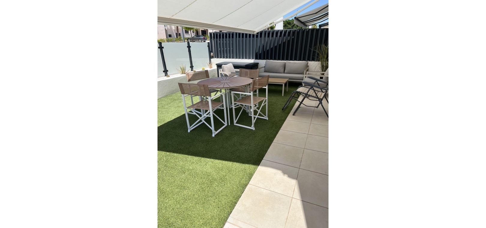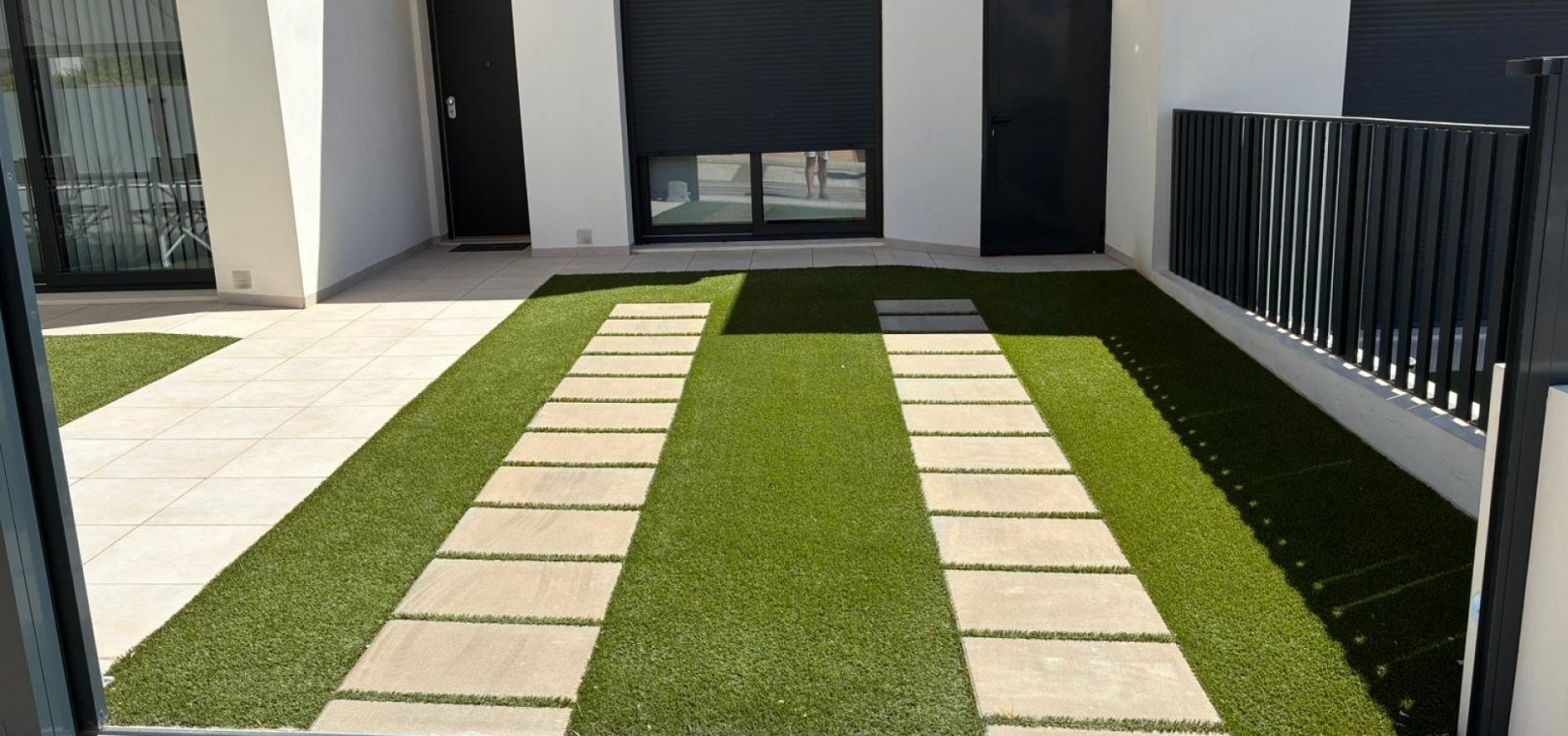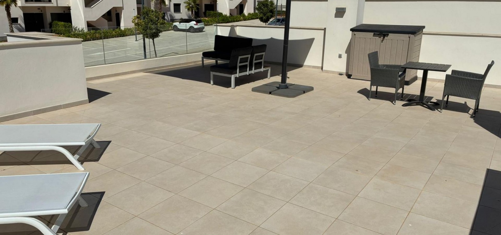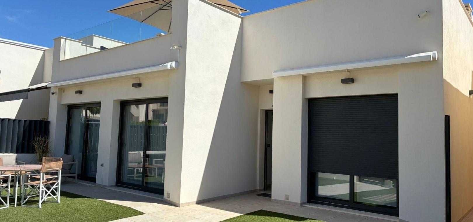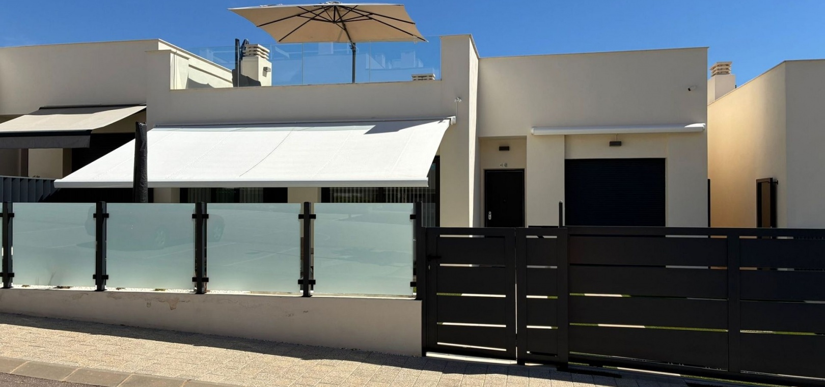 185 m² de surface construite 3 chambres spacieuses et 2 salles de bains élégantes Séjour lumineux avec cuisine ouverte Grande terrasse et solarium de 80 m² avec vue sur la mer Jardin privé nécessitant peu d'entretien Place de parking sur la parcelle Climatisation centrale (chaud et froid), placards intégrés et volets électriques Entièrement meublé et en parfait état Piscine commune à seulement 30 mètres