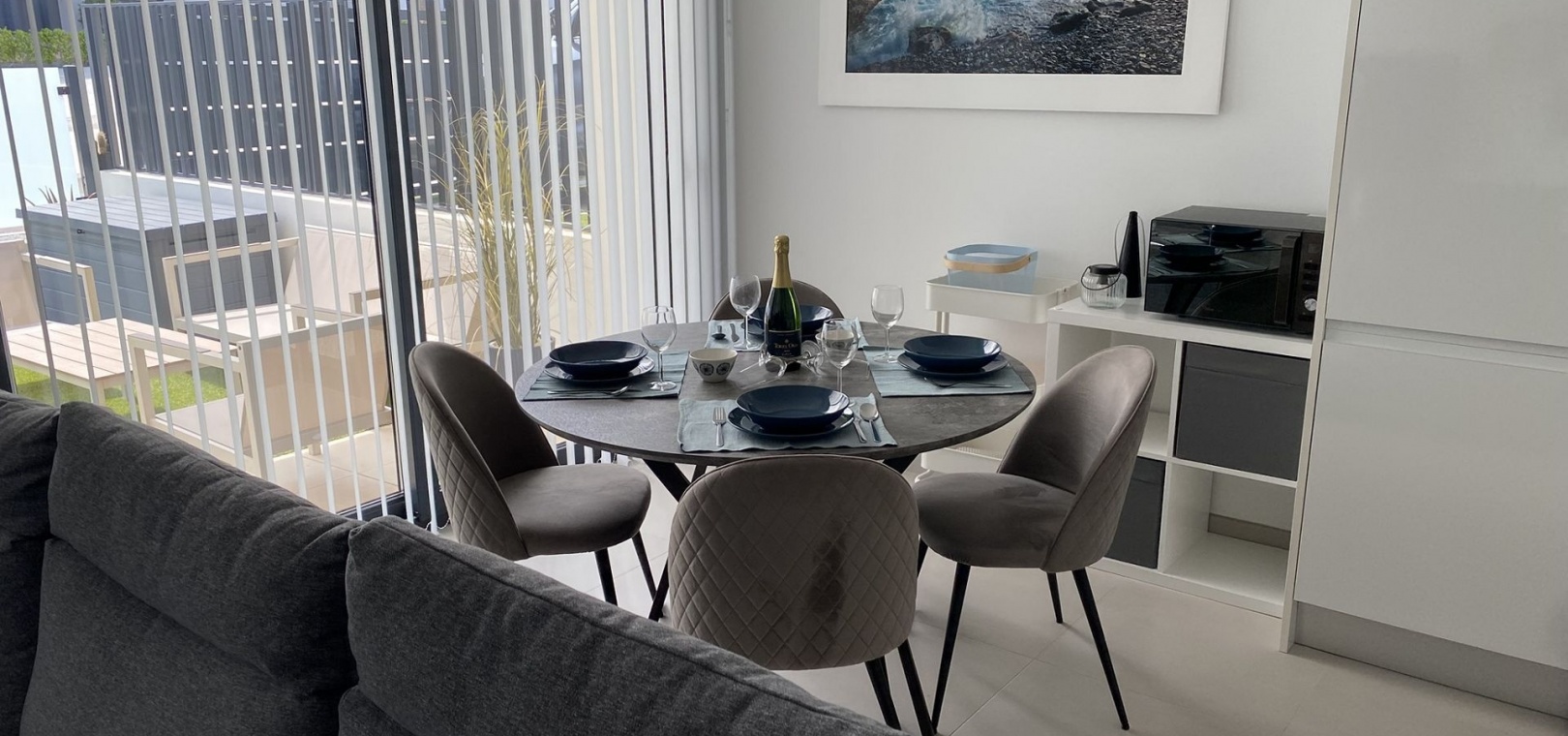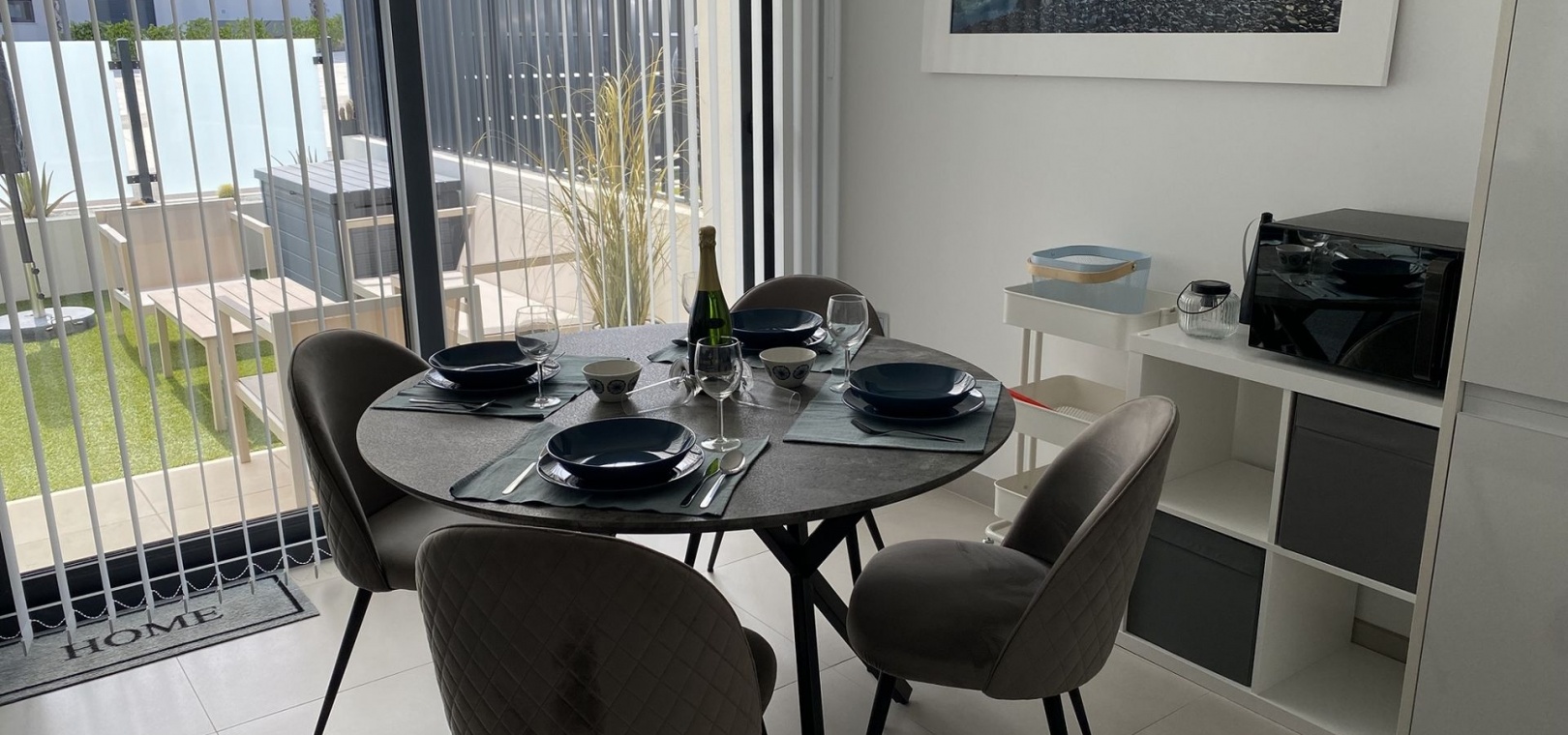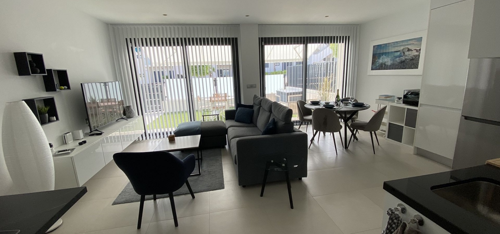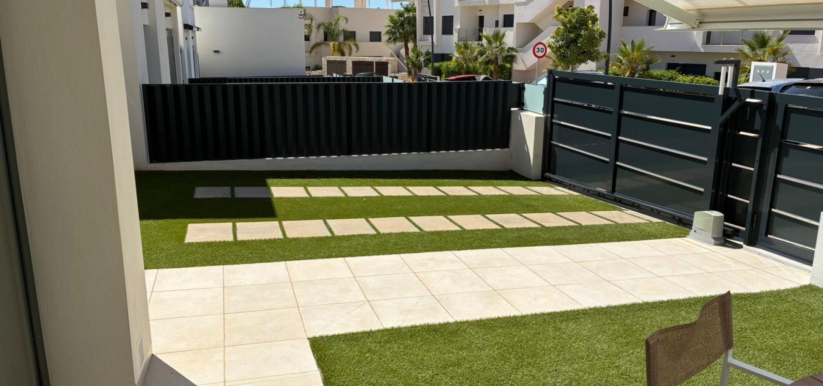 185 m² de surface construite 3 chambres spacieuses et 2 salles de bains élégantes Séjour lumineux avec cuisine ouverte Grande terrasse et solarium de 80 m² avec vue sur la mer Jardin privé nécessitant peu d'entretien Place de parking sur la parcelle Climatisation centrale (chaud et froid), placards intégrés et volets électriques Entièrement meublé et en parfait état Piscine commune à seulement 30 mètres