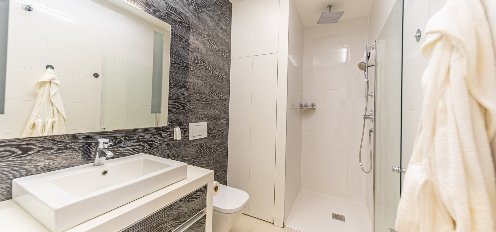2 chambres et 2 salles de bains (1 en suite) 70 m² construits + 40 m² de terrasse Vue sur la mer 2 places de parking souterraines et débarras Piscine extérieure avec cascade et plage Piscine intérieure chauffée, salle de sport, sauna, vestiaires Construit en 2013