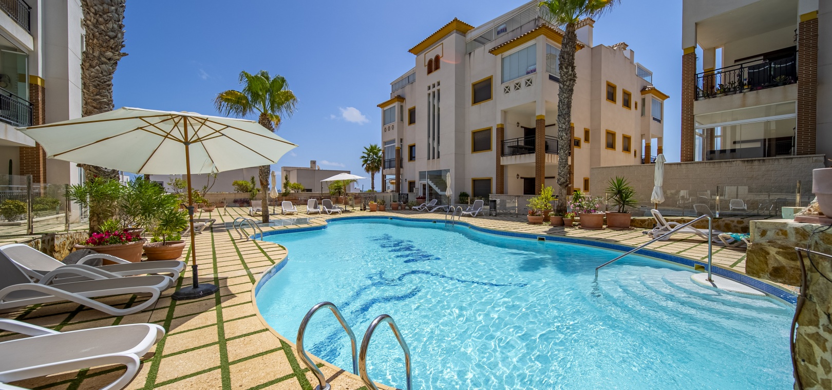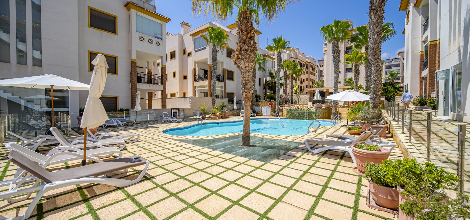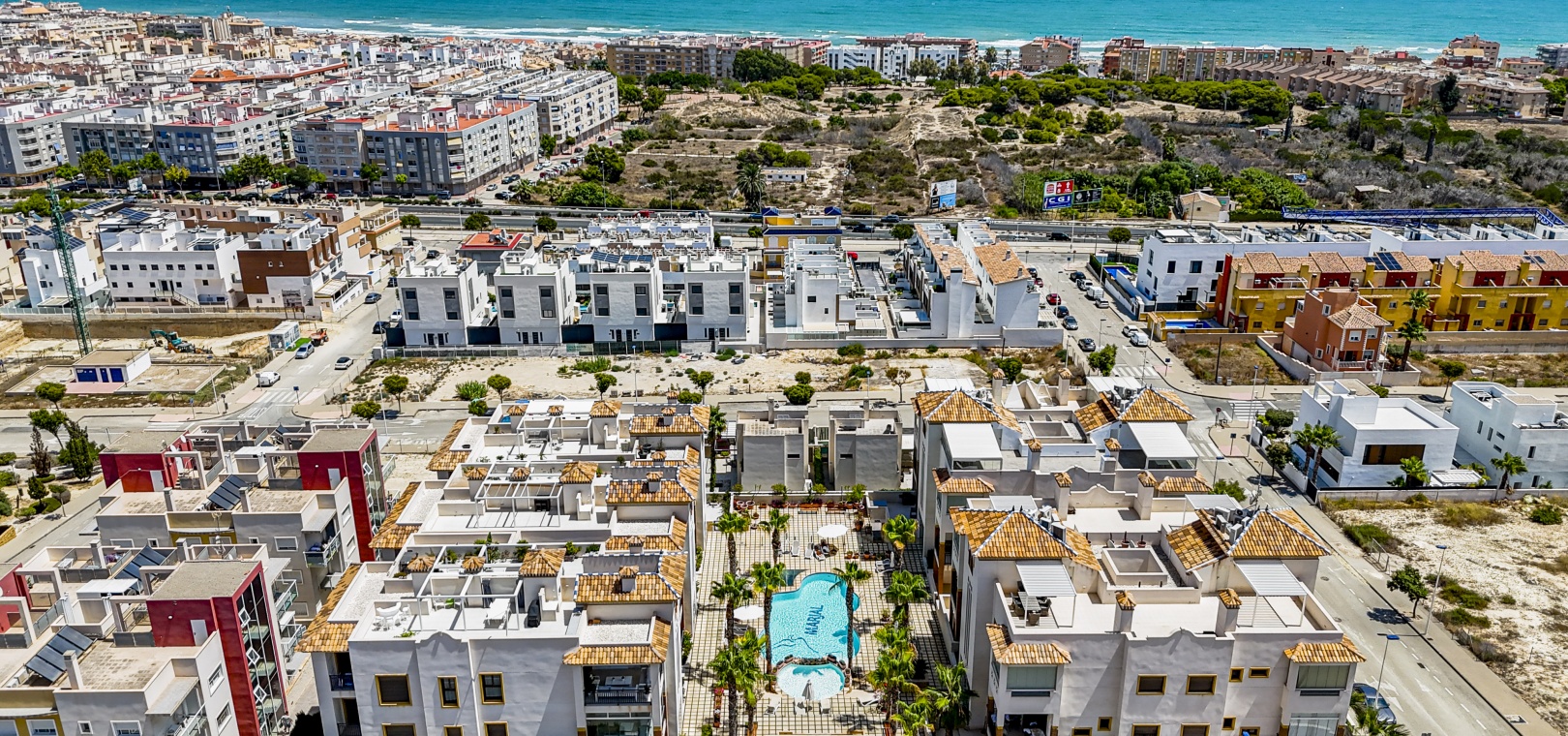 La propriété comprend deux places de parking souterraines et un débarras . La résidence offre de nombreux équipements , dont une piscine extérieure avec cascade et plage, une piscine intérieure chauffée, une salle de sport, un sauna et des vestiaires. Construit en 2013, l'appartement se trouve à seulement 850 m de la plage de Guardamar et à proximité des bars, boutiques et restaurants. L'aéroport d'Alicante est à seulement 30 minutes .