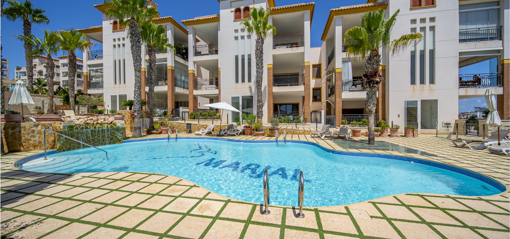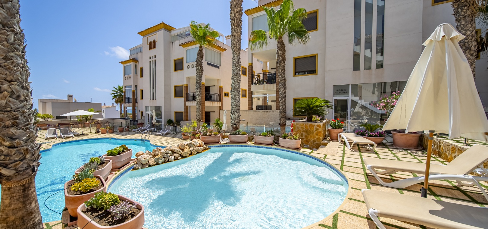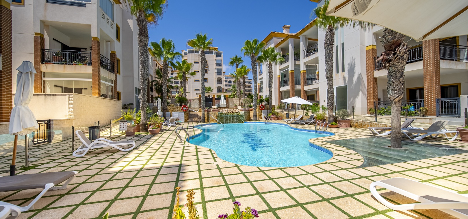 La propriété comprend deux places de parking souterraines et un débarras . La résidence offre de nombreux équipements , dont une piscine extérieure avec cascade et plage, une piscine intérieure chauffée, une salle de sport, un sauna et des vestiaires. Construit en 2013, l'appartement se trouve à seulement 850 m de la plage de Guardamar et à proximité des bars, boutiques et restaurants. L'aéroport d'Alicante est à seulement 30 minutes .