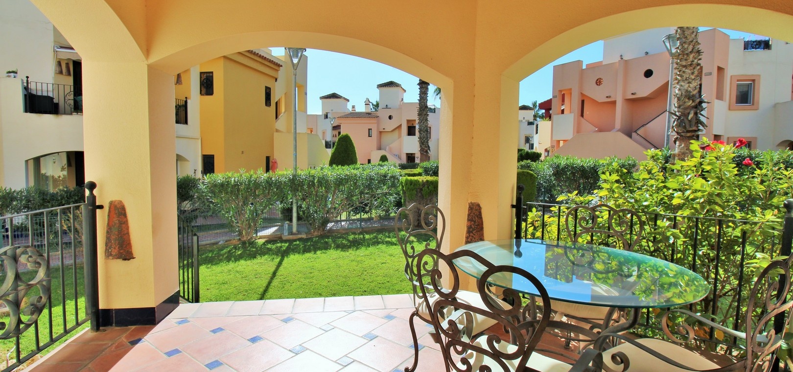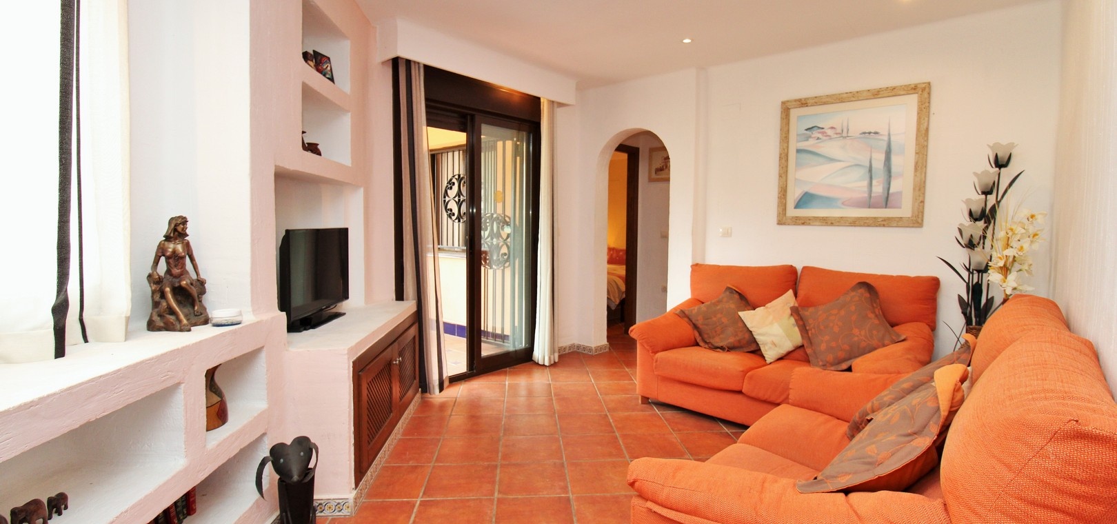 Cet élégant appartement au rez-de-chaussée allie le charme rustique espagnol au confort d'une communauté fermée sécurisée et bien entretenue.