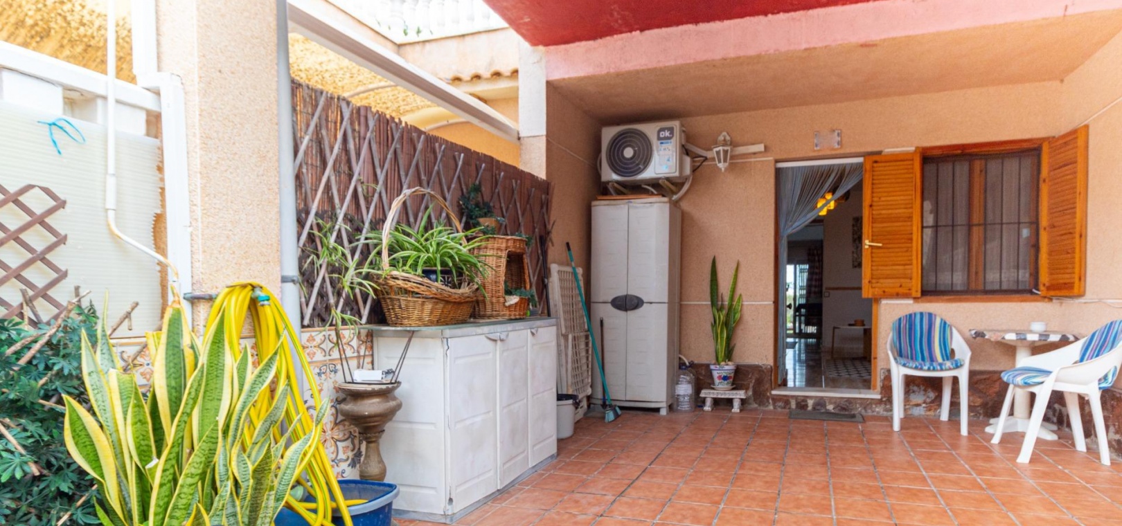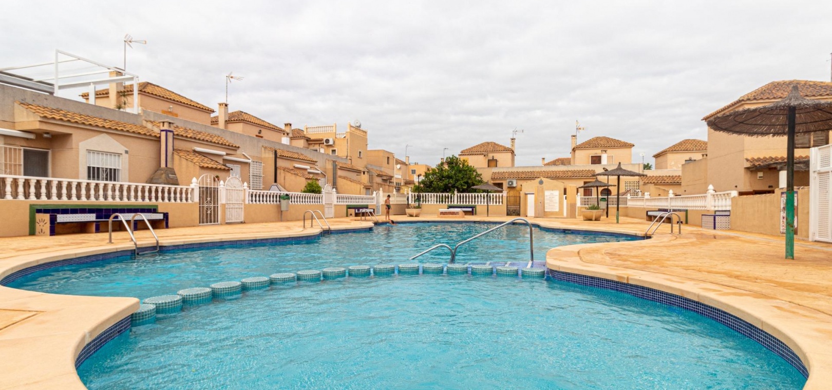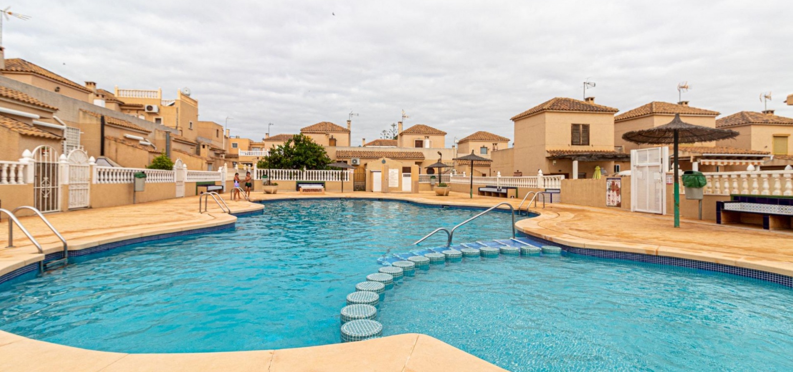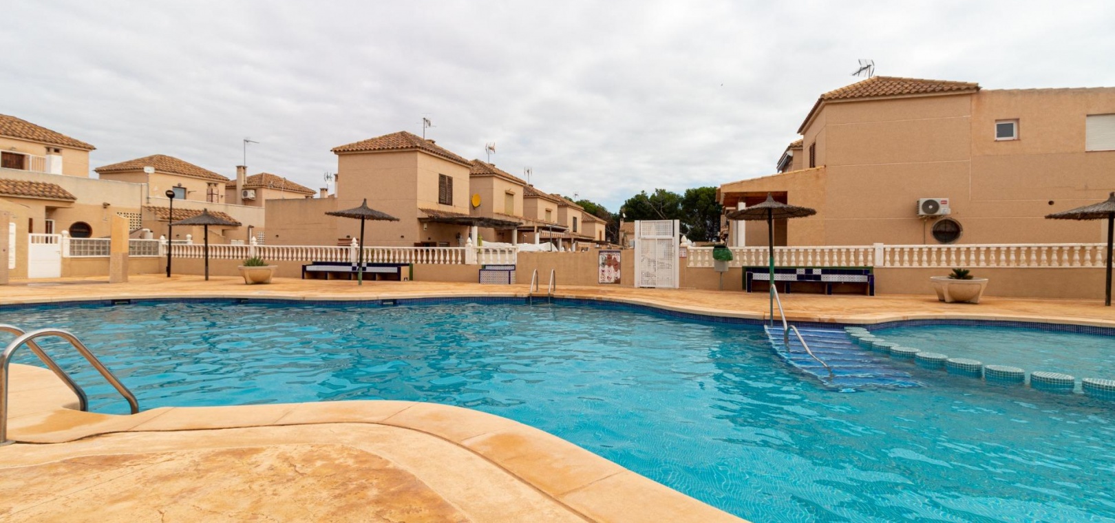 Ce charmant bungalow mitoyen est situé dans le quartier résidentiel très prisé et paisible de Residencial Serena à Punta Prima. Idéal pour y vivre à l'année ou comme maison de vacances relaxante en bord de mer, il offre confort, intimité et un accès facile aux commodités locales.