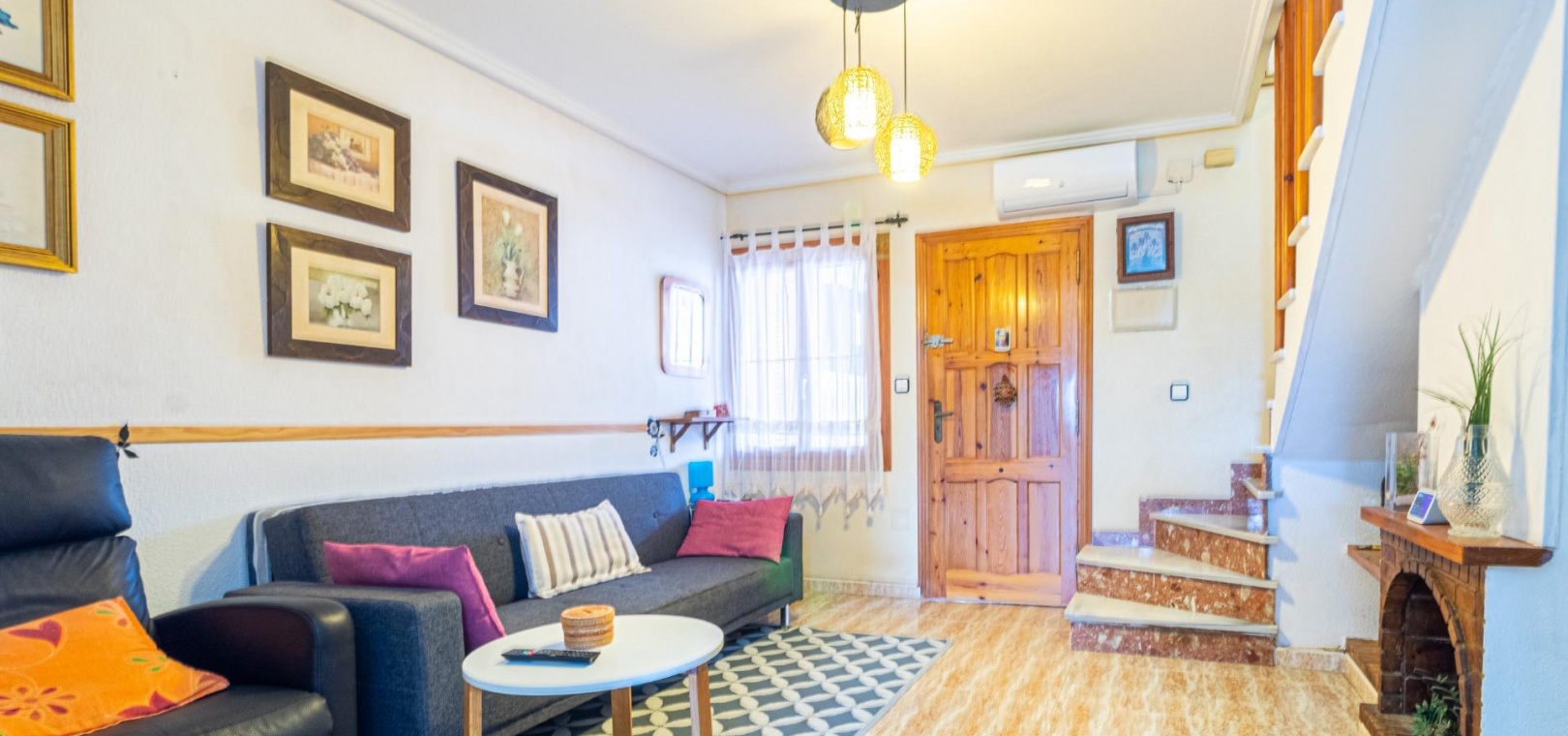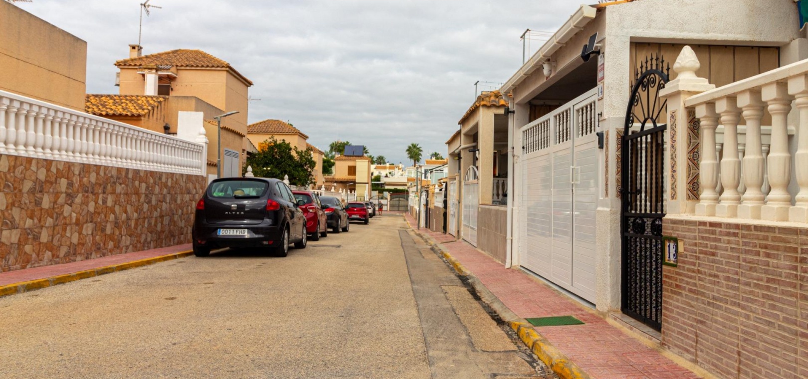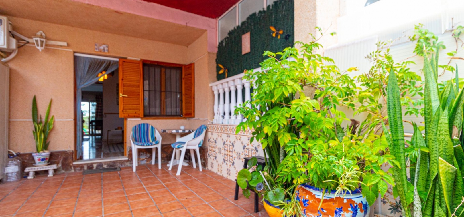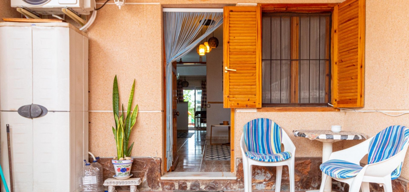 Ce charmant bungalow mitoyen est situé dans le quartier résidentiel très prisé et paisible de Residencial Serena à Punta Prima. Idéal pour y vivre à l'année ou comme maison de vacances relaxante en bord de mer, il offre confort, intimité et un accès facile aux commodités locales.