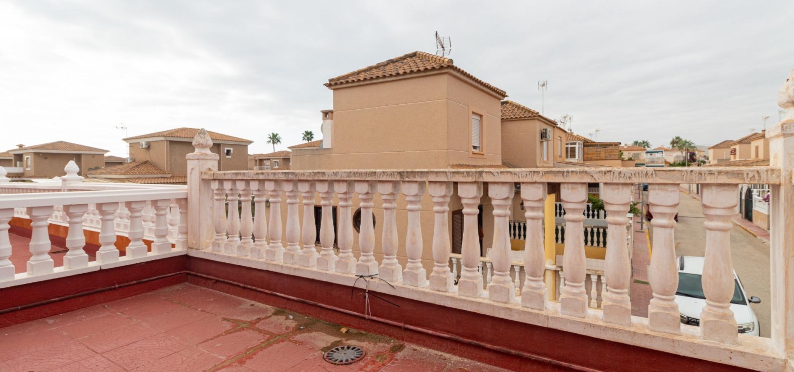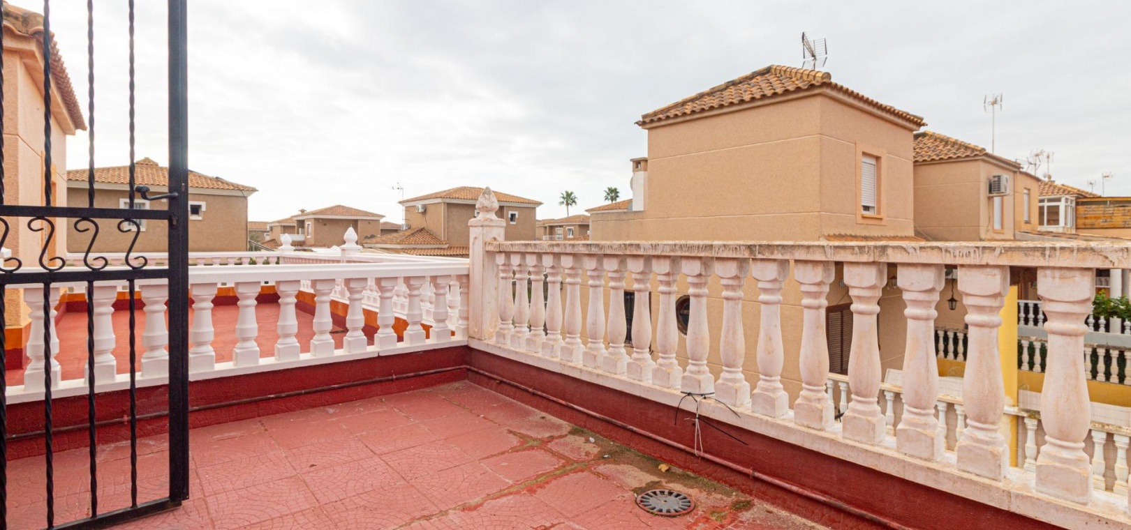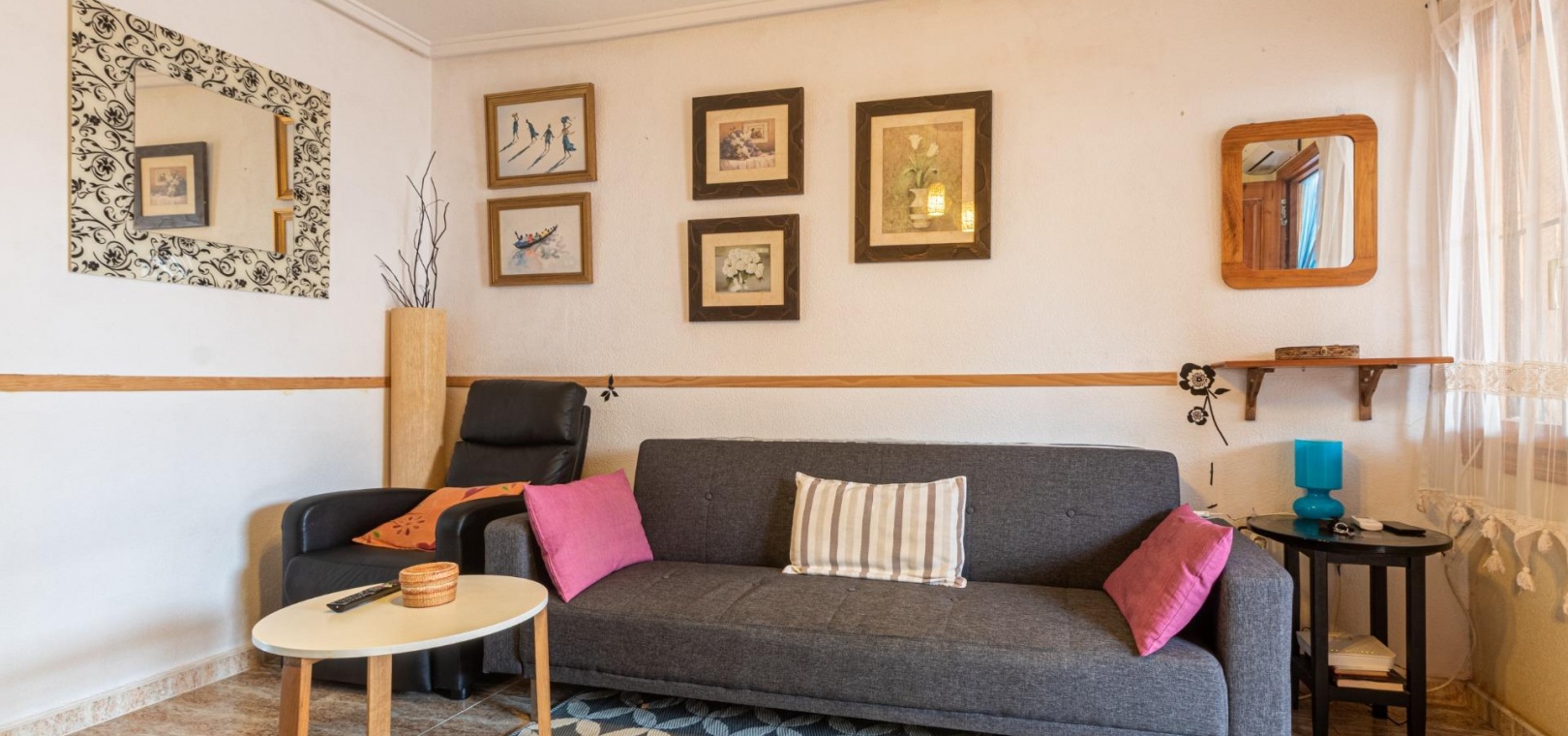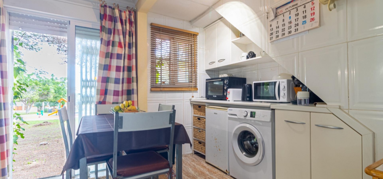 Ce charmant bungalow mitoyen est situé dans le quartier résidentiel très prisé et paisible de Residencial Serena à Punta Prima. Idéal pour y vivre à l'année ou comme maison de vacances relaxante en bord de mer, il offre confort, intimité et un accès facile aux commodités locales.