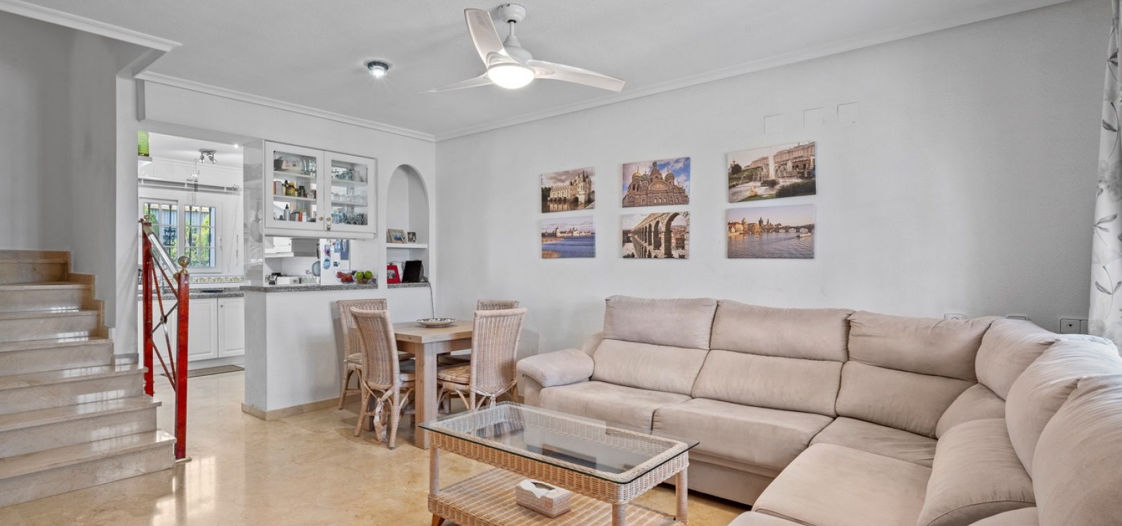 Cette élégante maison de ville de 3 chambres, 2 salles de bains et un WC séparé est située au cœur de Los Dolses, un quartier résidentiel prisé entre Villamartín et La Zenia, sur la Costa Blanca ensoleillée. Elle allie confort, luminosité et un emplacement idéal, à quelques minutes seulement des commerces, restaurants, terrains de golf et des plages d'Orihuela Costa.