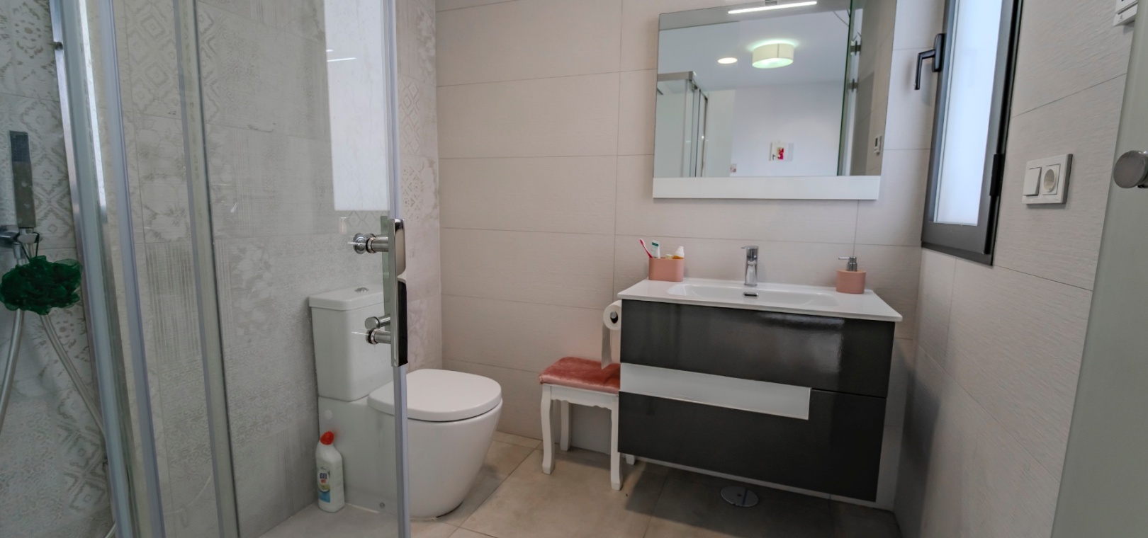 3 chambres | 3 salles de bain Espace de vie ouvert comprenant salon, salle à manger et cuisine Cuisine moderne laquée avec appareils électroménagers intégrés Planchers chauffants dans toutes les salles de bains Climatisation gainable au rez-de-chaussée + unité à l'étage Suite parentale avec dressing, salle de bains attenante et accès au solarium Piscine privée, douche extérieure et jardin paysager Parking hors route avec portail électrique Panneaux solaires avec système de stockage par batterie IBI/Suma : 465 € par an