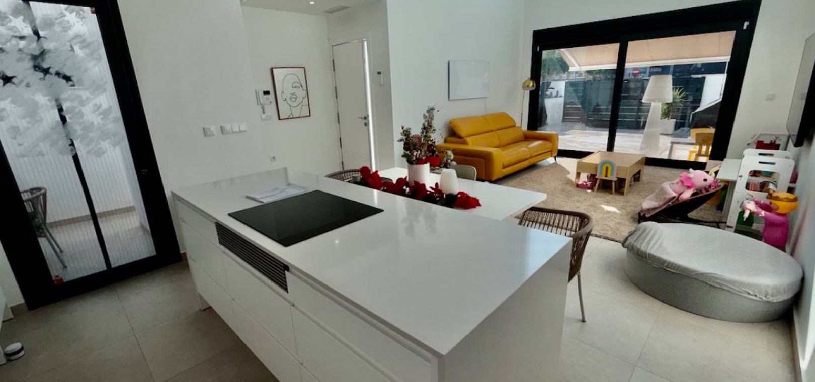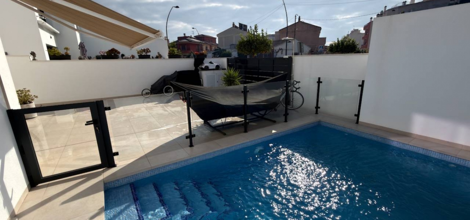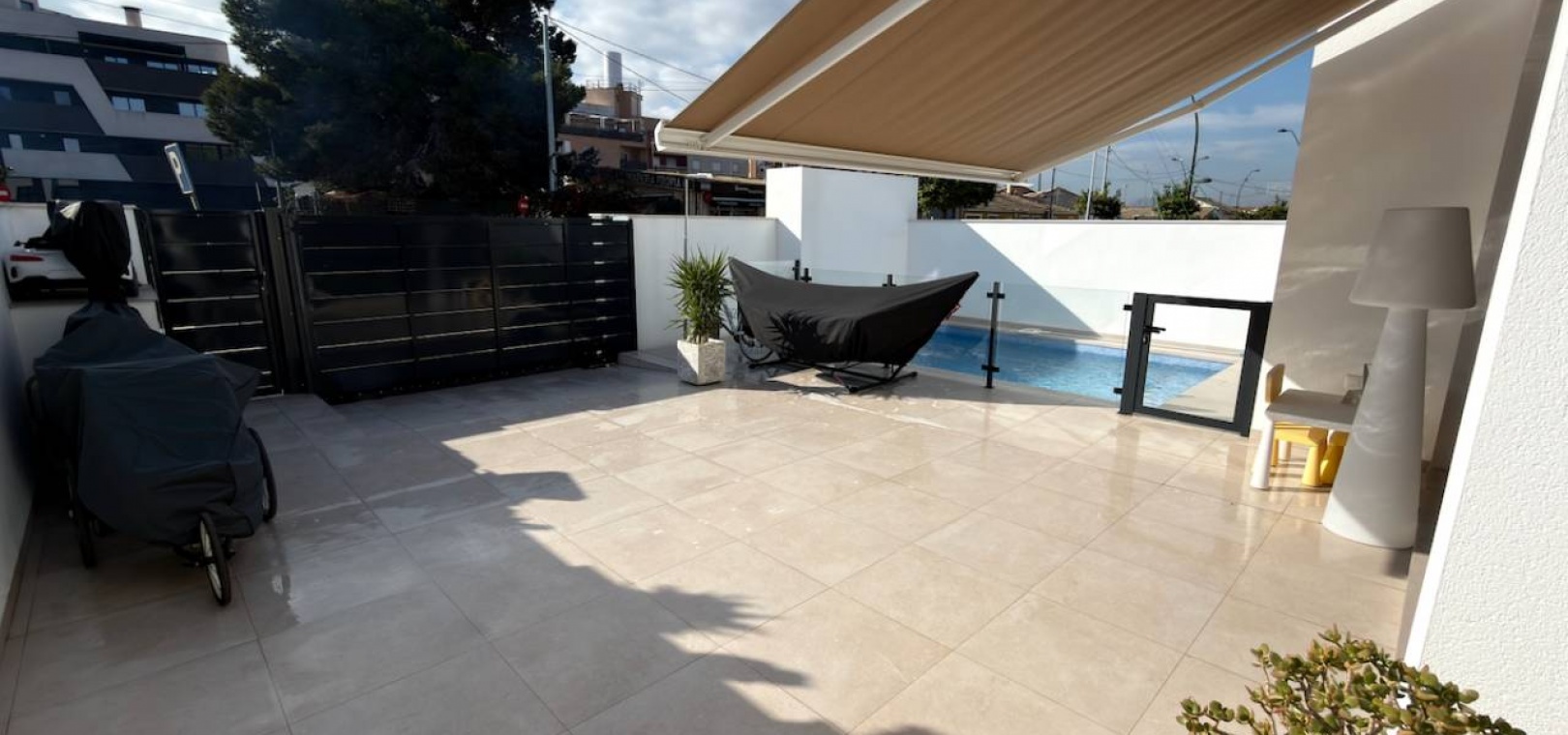 Charmant chalet individuel à vendre à Formentera del Segura, situé dans un quartier résidentiel paisible et à proximité immédiate de toutes les commodités. Orienté plein sud, il se compose de deux niveaux. Le rez-de-chaussée offre un vaste séjour/salle à manger baigné de lumière, une cuisine entièrement équipée, une chambre double avec salle de bains privative et une buanderie pratique. À l'extérieur, vous profiterez d'une grande terrasse avec piscine privée et d'un parking privé. L'étage comprend deux chambres supplémentaires avec placards intégrés et une salle de bains avec douche à l'italienne. Parmi les autres atouts, citons la climatisation gainable, les volets roulants électriques et les fenêtres Climalit de haute qualité, garantissant confort et efficacité énergétique tout au long de l'année.