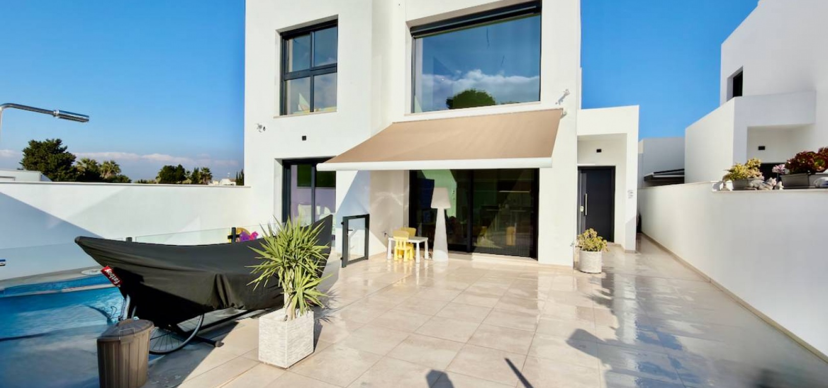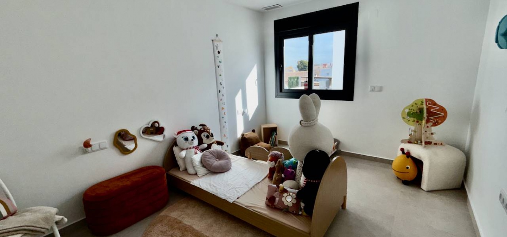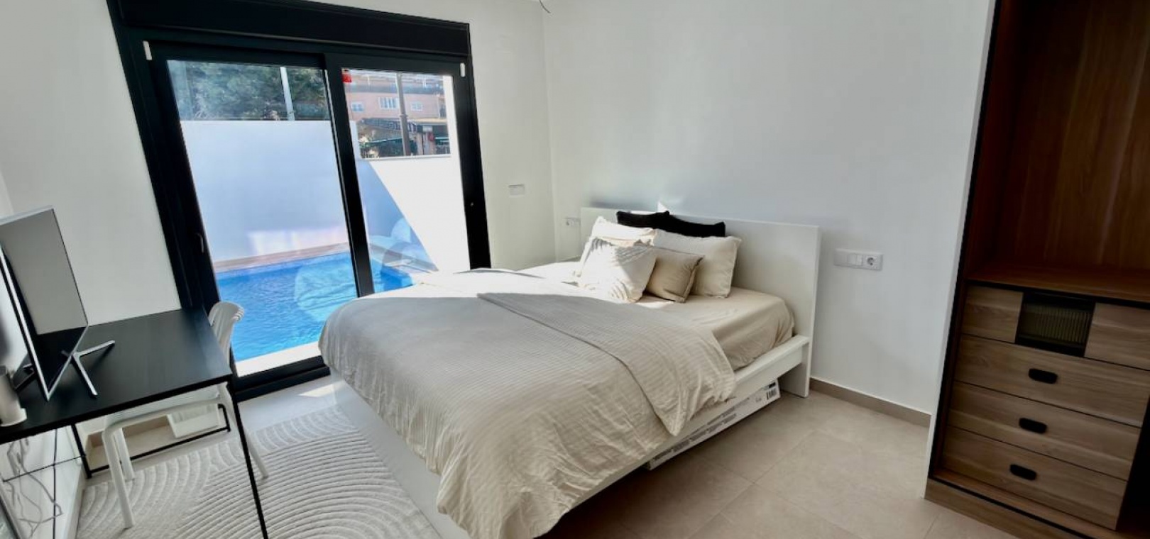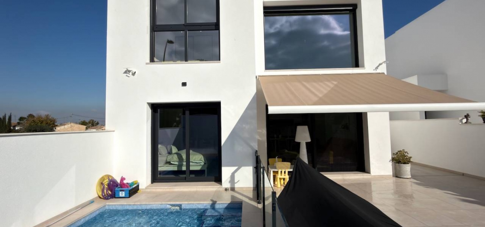 Charmant chalet individuel à vendre à Formentera del Segura, situé dans un quartier résidentiel paisible et à proximité immédiate de toutes les commodités. Orienté plein sud, il se compose de deux niveaux. Le rez-de-chaussée offre un vaste séjour/salle à manger baigné de lumière, une cuisine entièrement équipée, une chambre double avec salle de bains privative et une buanderie pratique. À l'extérieur, vous profiterez d'une grande terrasse avec piscine privée et d'un parking privé. L'étage comprend deux chambres supplémentaires avec placards intégrés et une salle de bains avec douche à l'italienne. Parmi les autres atouts, citons la climatisation gainable, les volets roulants électriques et les fenêtres Climalit de haute qualité, garantissant confort et efficacité énergétique tout au long de l'année.