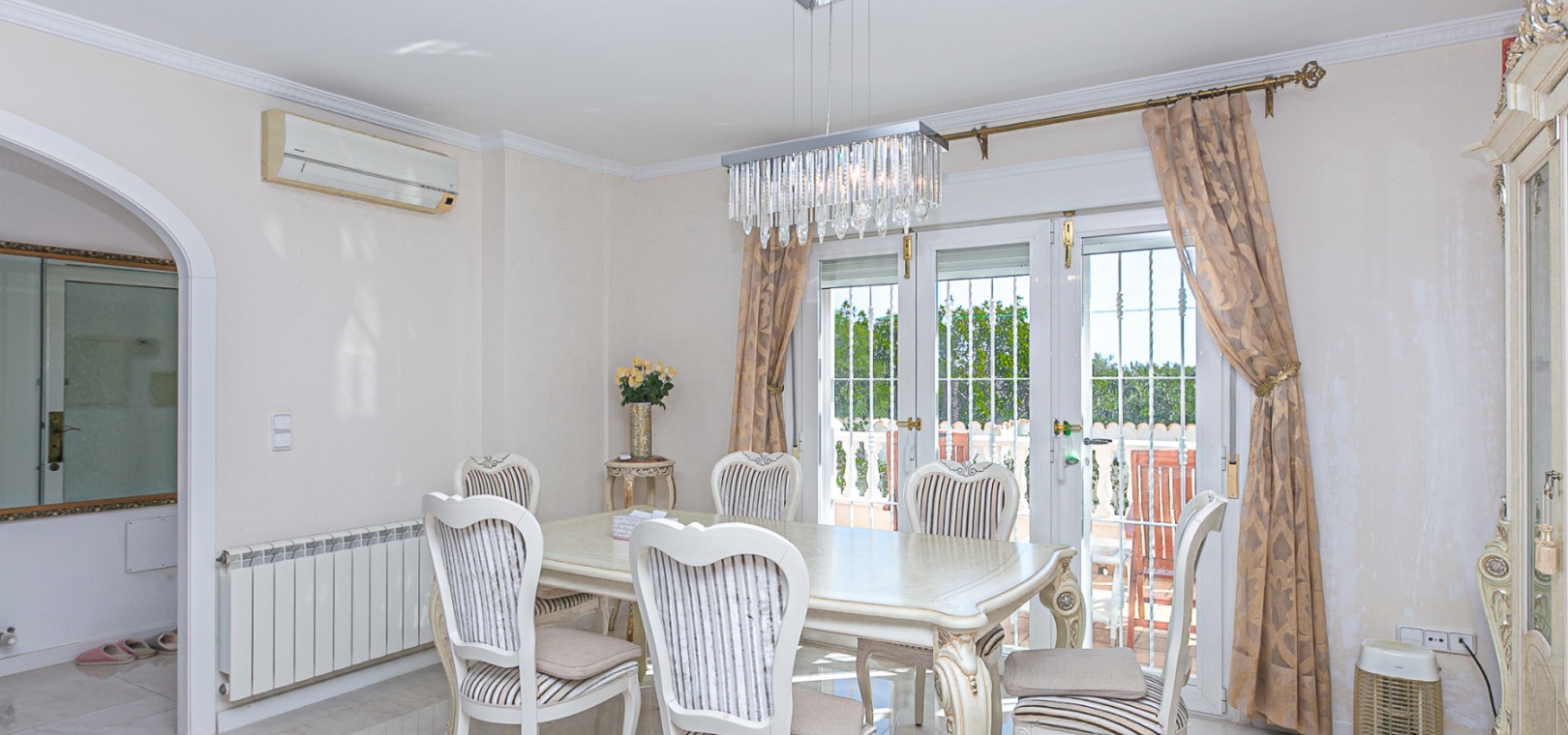 Nous avons le plaisir de vous présenter cette villa d'exception de 4 chambres et 2 salles de bain et demie , idéalement située en bordure du prestigieux golf de Campoamor . Conçue à l'origine avec cinq chambres, la propriété a été repensée avec soin afin d'optimiser l'espace de vie, créant ainsi une maison plus lumineuse, plus spacieuse et plus accueillante.