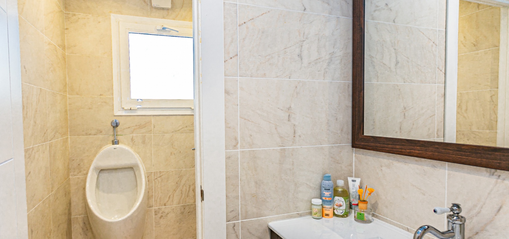 Le rez-de-chaussée s'ouvre sur un élégant hall d'entrée accessible depuis la terrasse couverte à l'avant. Ce niveau comprend une cuisine indépendante entièrement équipée avec des appareils haut de gamme, notamment des éléments Miele , ainsi qu'une buanderie et un cellier. Le séjour-salle à manger, récemment rénové, allie style et confort. Il est agrémenté d'une cheminée à bois, d'un mur partiellement revêtu de marbre et de grandes fenêtres qui baignent l'espace de lumière naturelle. Des toilettes invités modernisées et une chambre double, actuellement aménagée en salon de thé traditionnel, complètent cet étage.