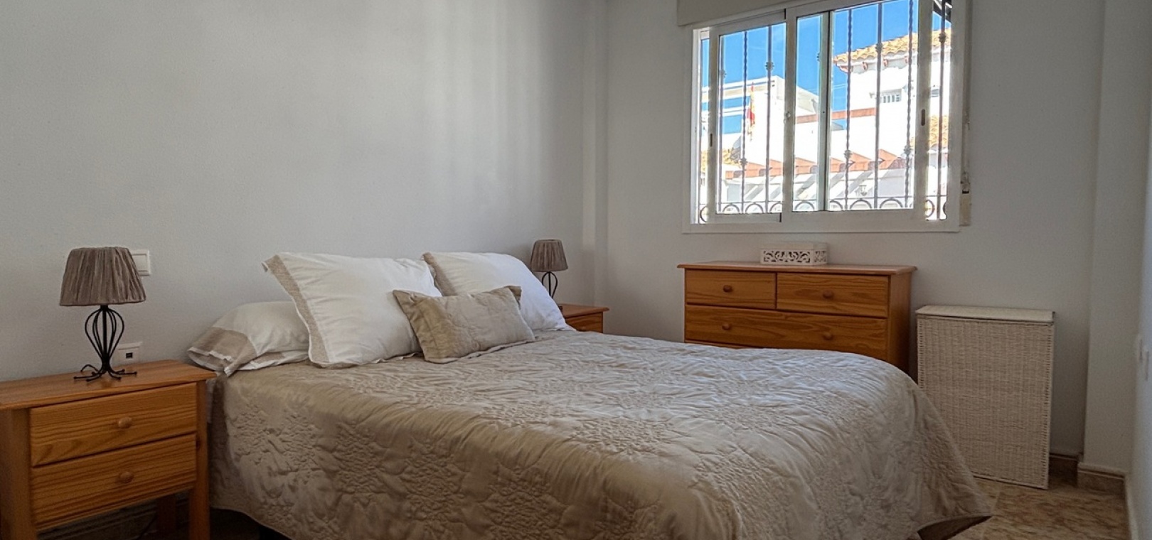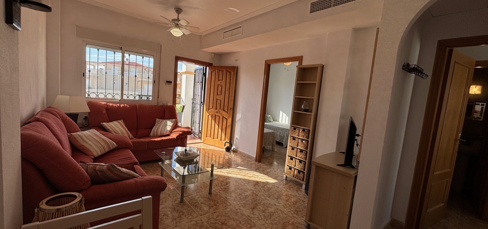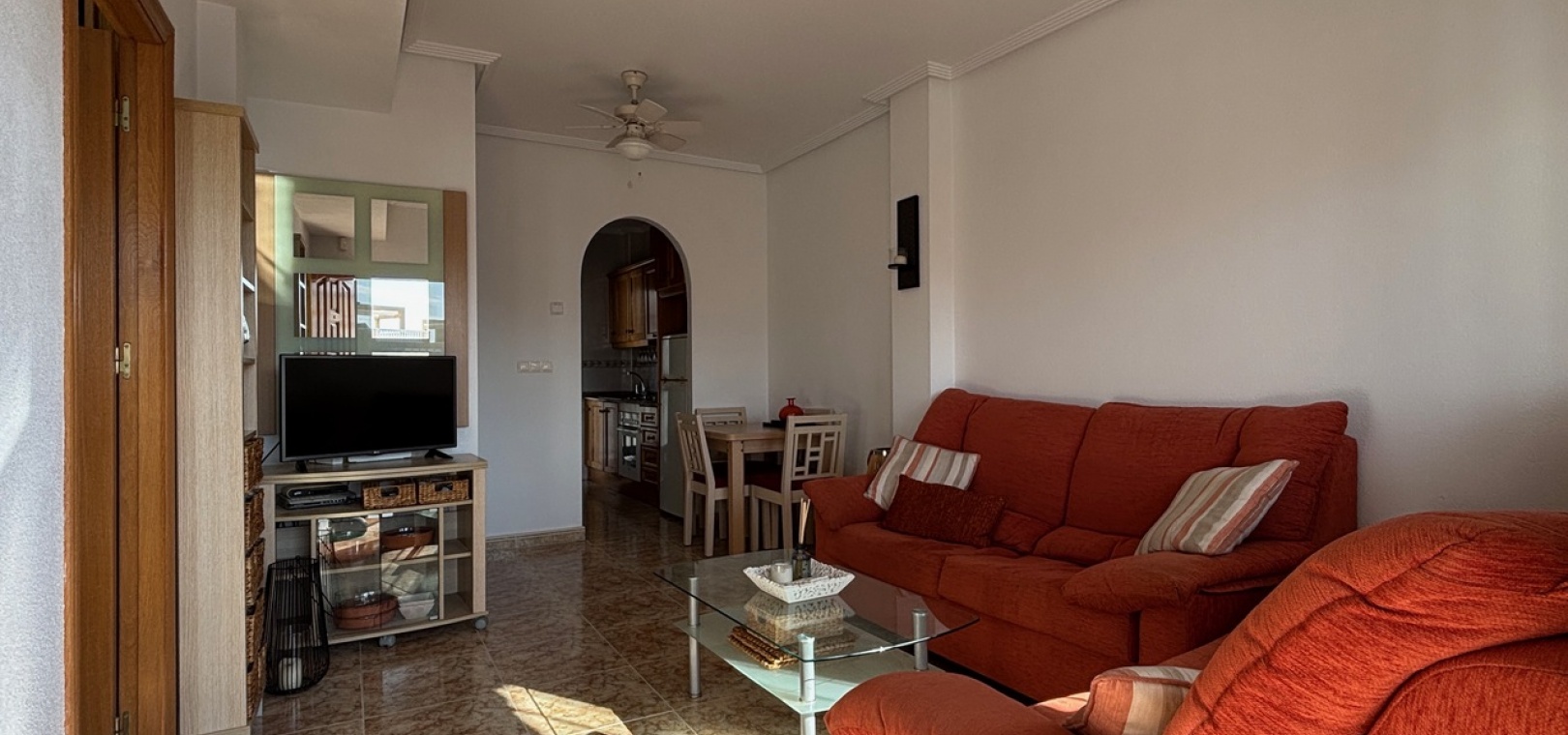 Ce bel appartement de 2 chambres et 2 salles de bains, situé au dernier étage, bénéficie d'un emplacement idéal à La Cinuelica R15, Punta Prima, Costa Blanca . Orienté sud-ouest, il est ensoleillé toute la journée et dispose d'un grand solarium privatif sur le toit offrant une vue sur la mer.