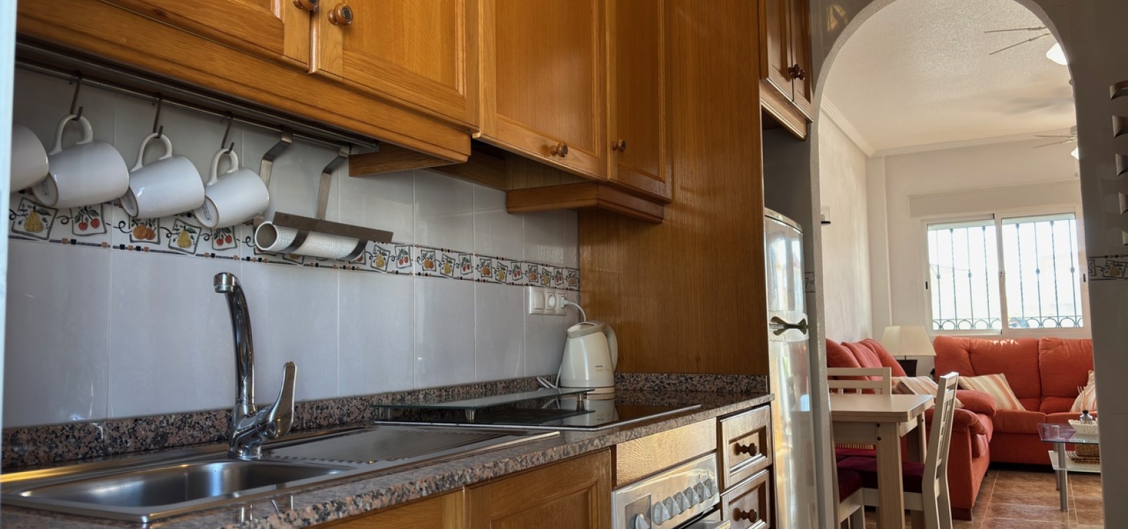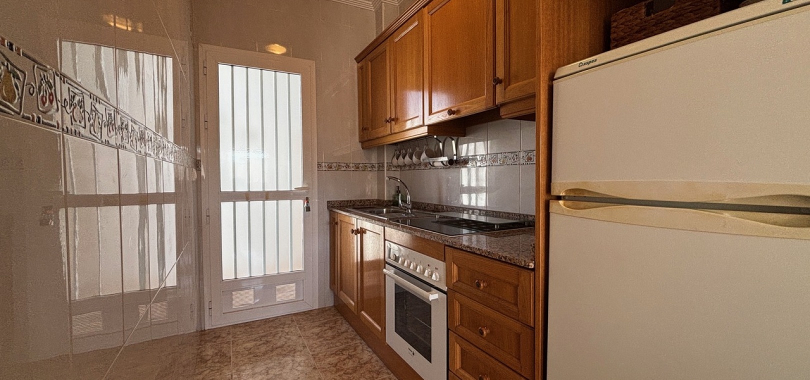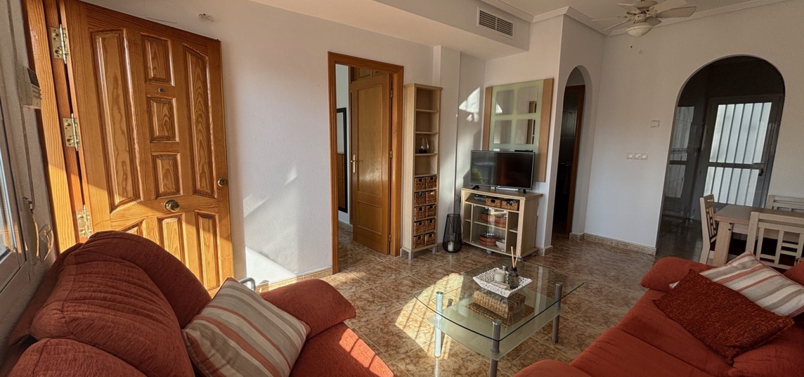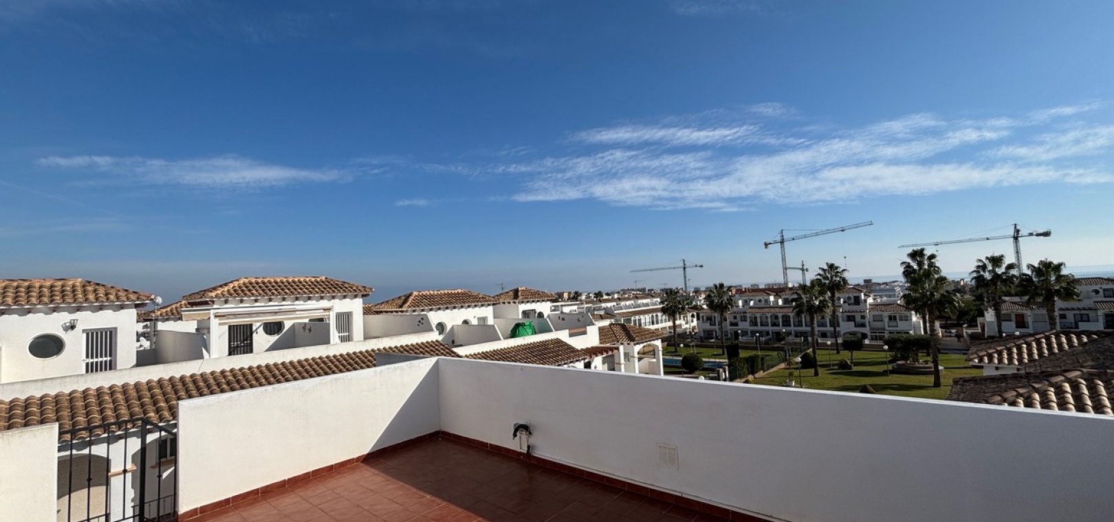 Ce bel appartement de 2 chambres et 2 salles de bains, situé au dernier étage, bénéficie d'un emplacement idéal à La Cinuelica R15, Punta Prima, Costa Blanca . Orienté sud-ouest, il est ensoleillé toute la journée et dispose d'un grand solarium privatif sur le toit offrant une vue sur la mer.