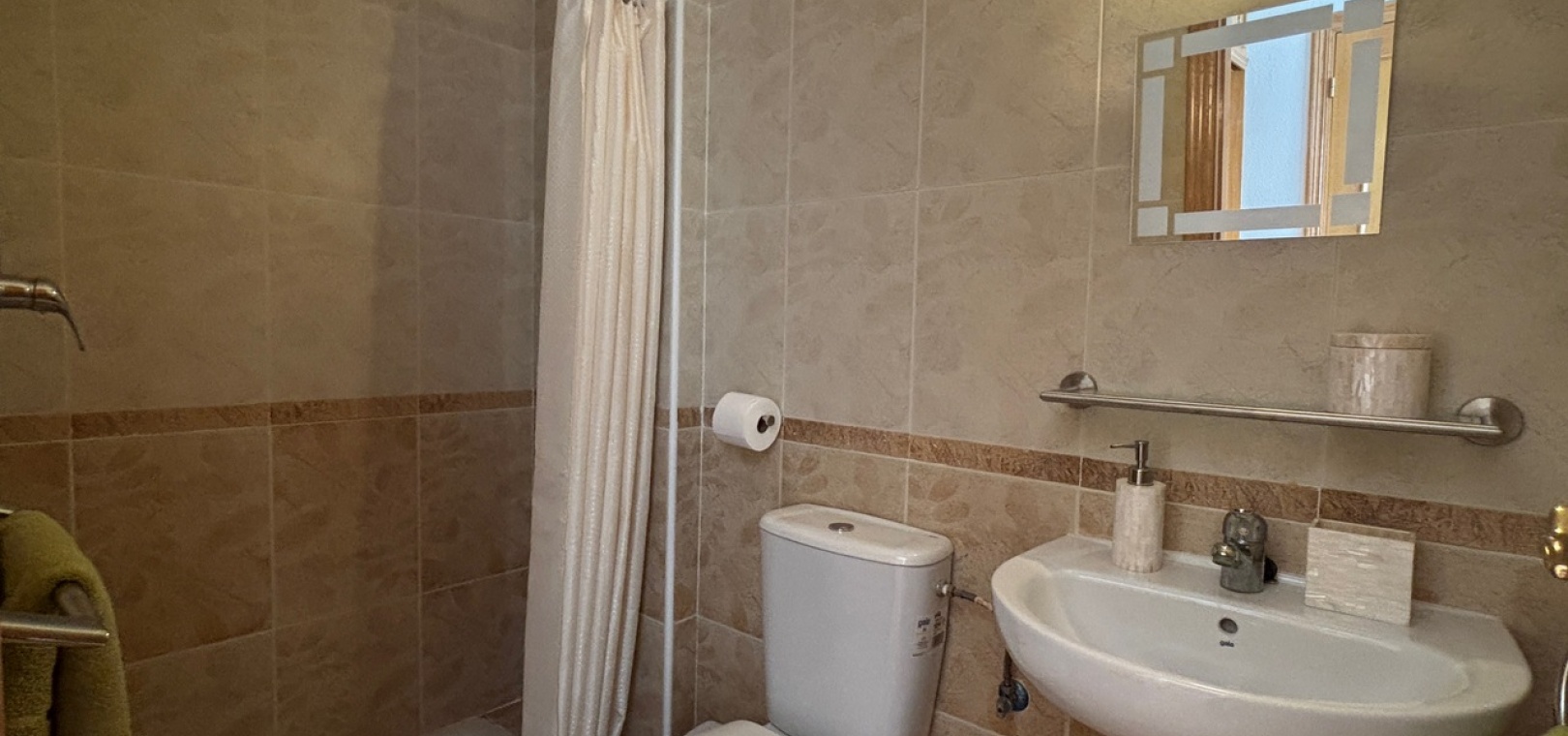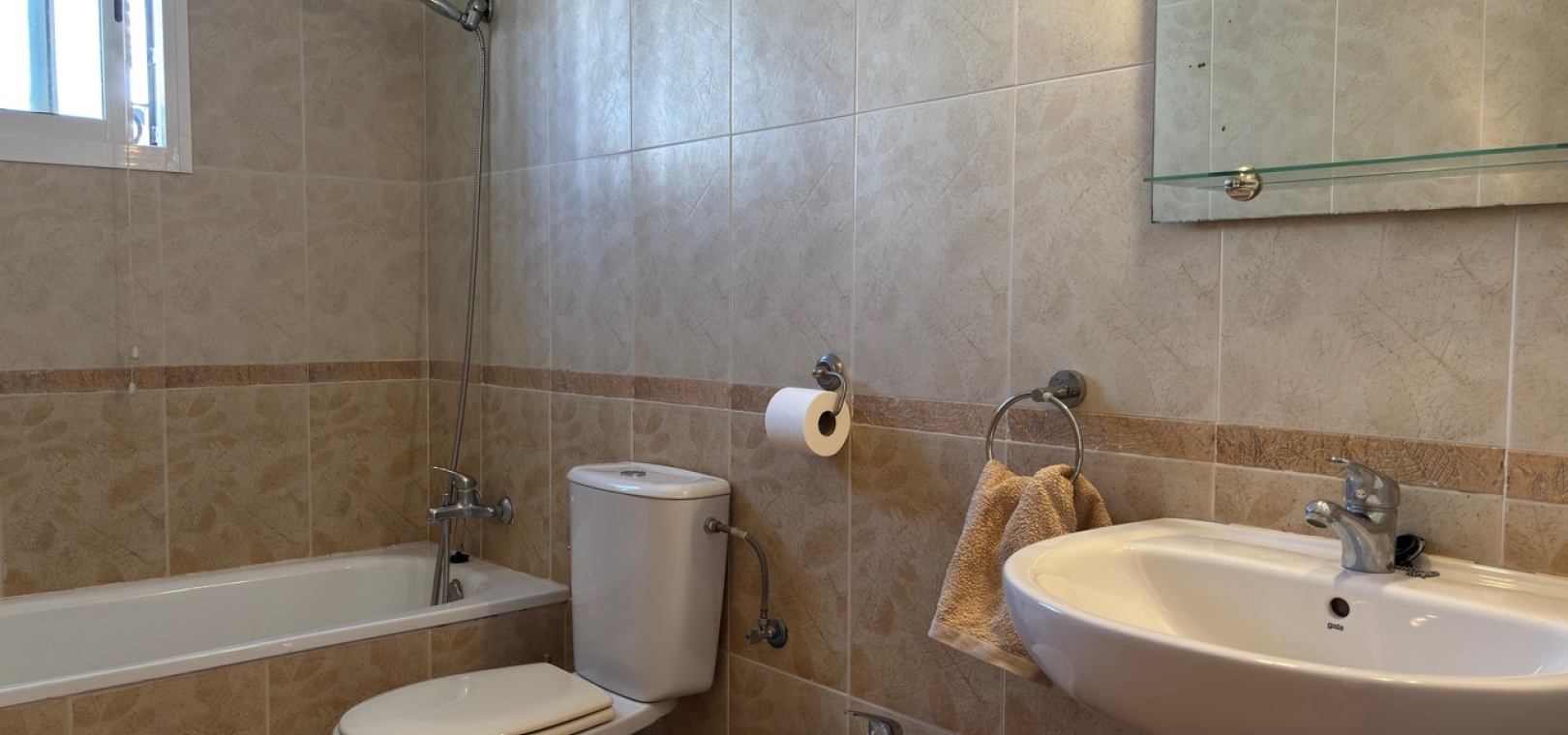 L'espace de vie principal comprend une terrasse/balcon de 10 m² donnant sur un salon-salle à manger lumineux. À l'arrière se trouve une cuisine entièrement équipée. L'appartement comprend deux chambres doubles avec placards intégrés et une salle de bains familiale. La chambre principale bénéficie d'une salle de bains privative . Des ventilateurs de plafond sont installés dans toutes les pièces pour un confort optimal.