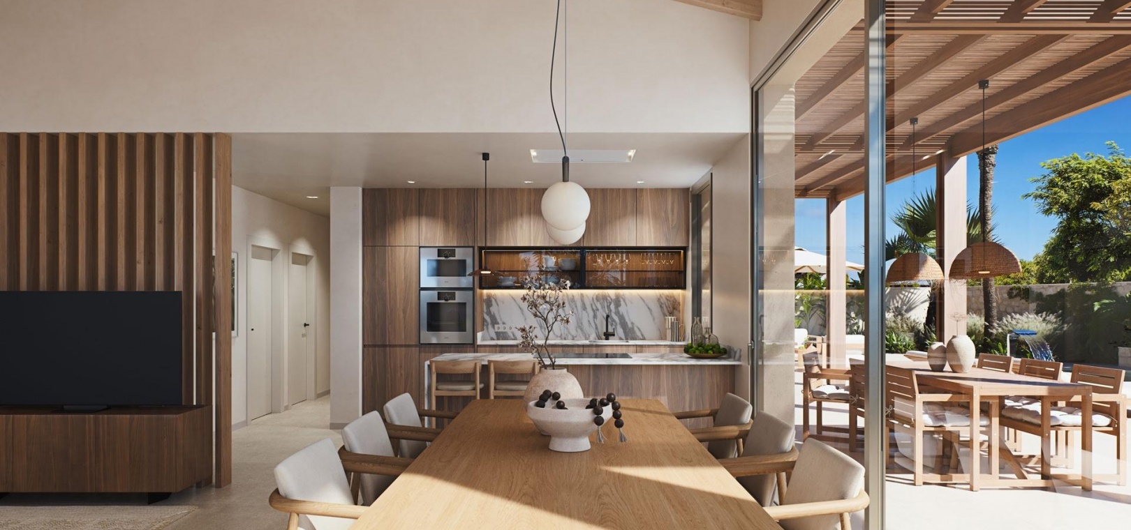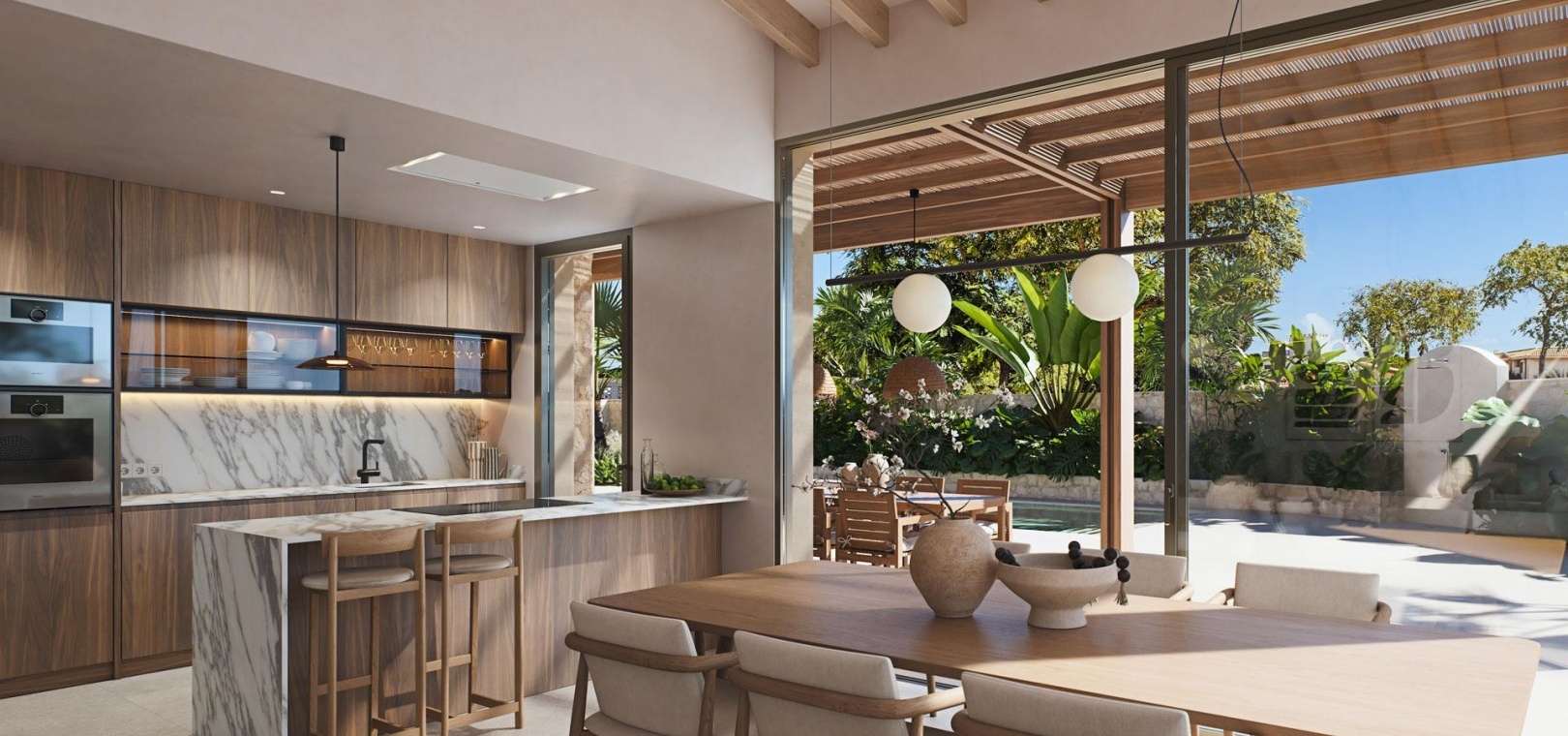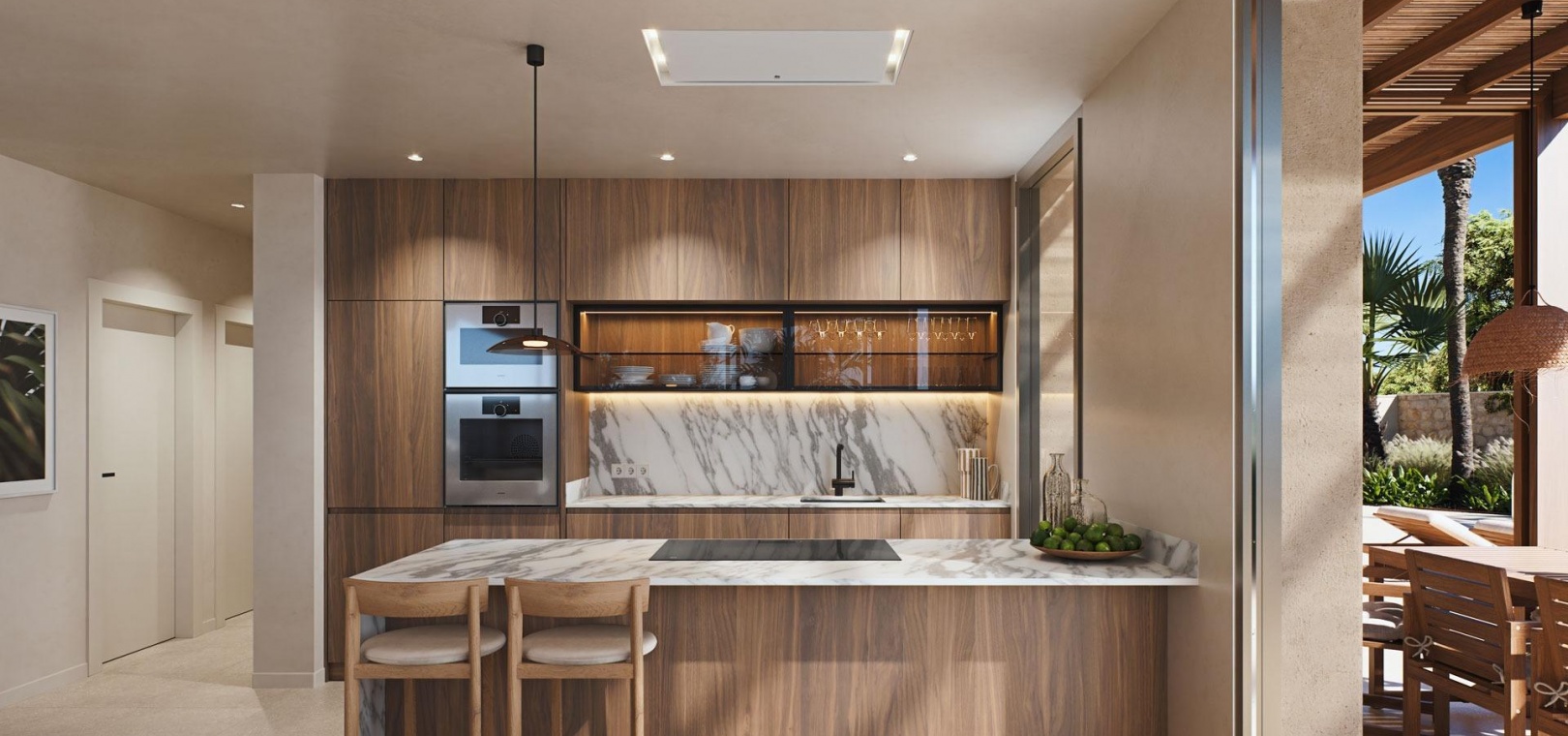Cuisine moderne entièrement équipée avec des finitions de haute qualité et des appareils électroménagers intégrés