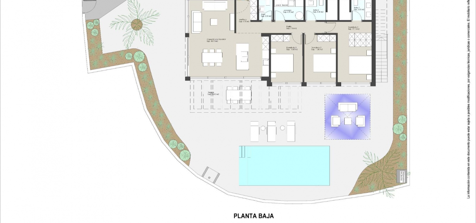 Cette superbe villa de plain-pied offre une surface construite de 130 m² conçue pour maximiser la lumière naturelle et le confort.