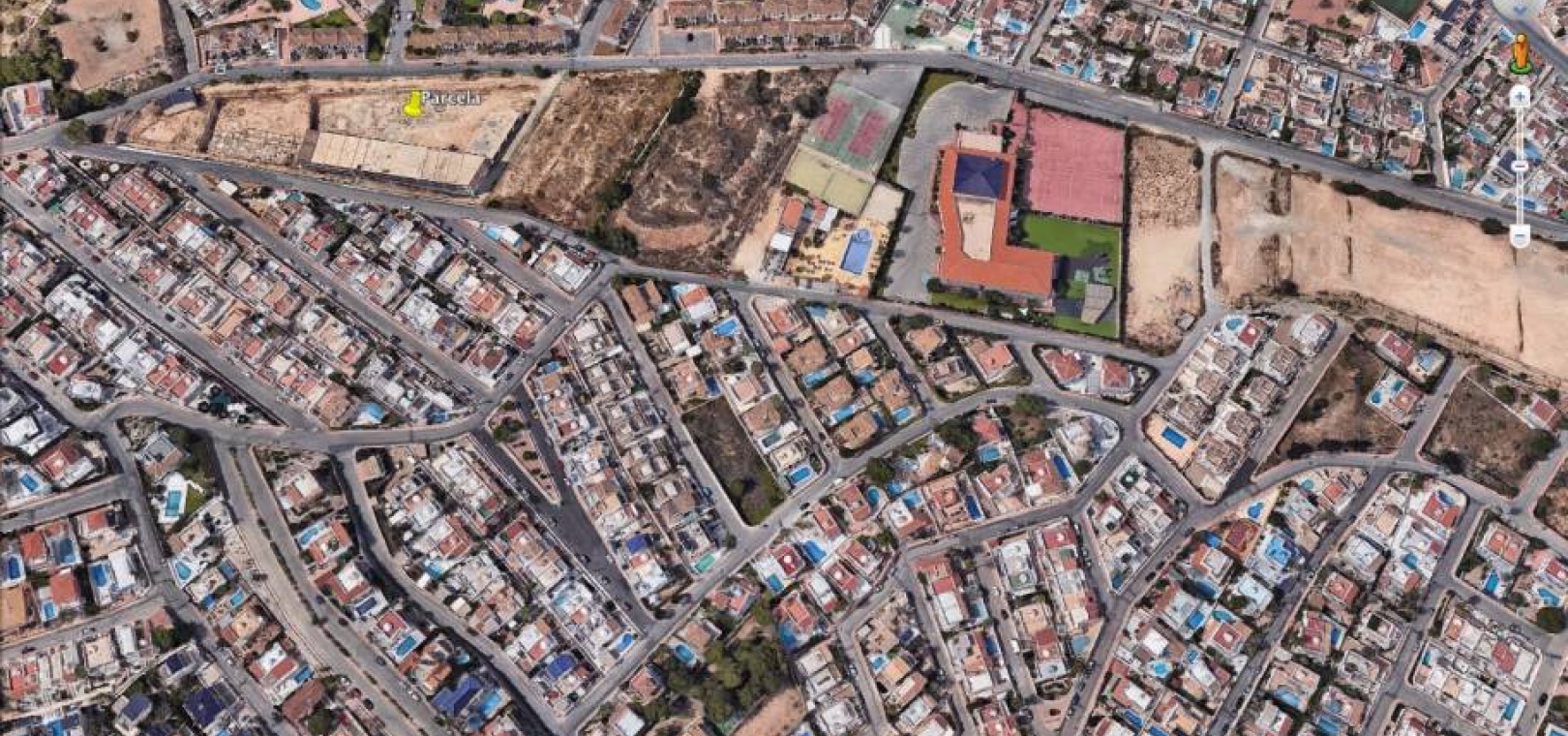 Terrain de 8 600 m² près du Colegio El Limonar (Villamartin). Ce terrain, constructible pour un hôtel ou une résidence pour personnes âgées, est actuellement aménagé dans sa première phase. Le projet actuel prévoit 68 appartements d'environ 70 à 80 m² chacun.