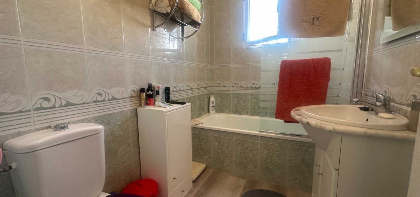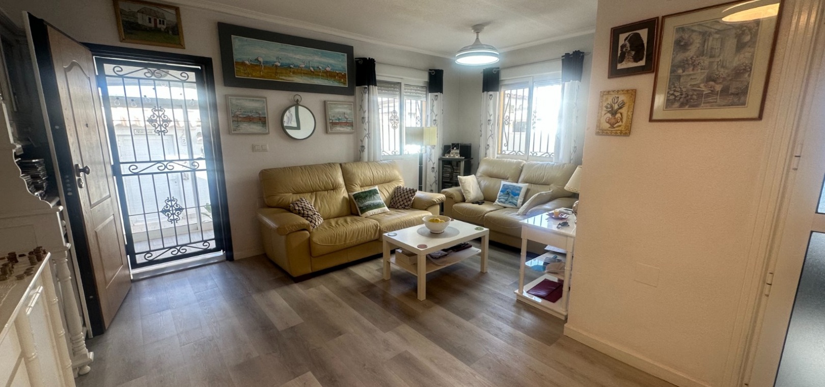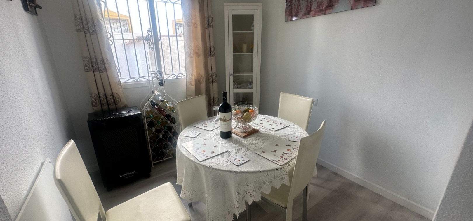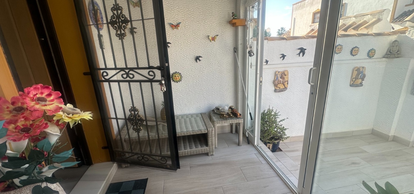 Maison de ville quadrangulaire orientée ouest, située dans l'urbanisation Entre Naranjos, à Orihuela, à proximité du golf de Vistabella. La maison comprend un grand jardin avec rangements, une terrasse vitrée, un séjour/salle à manger ouvert avec poêle à bois et cuisine séparée, une chambre double (actuellement utilisée comme salle à manger) et une salle de bains avec douche au rez-de-chaussée. À l'étage, on trouve deux autres chambres doubles, une salle de bains familiale et une terrasse attenante à la chambre principale. Un escalier mène à un solarium baigné de soleil offrant une belle vue. La piscine commune est à seulement 50 mètres.