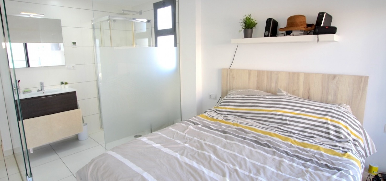 Les deux chambres sont de spacieuses chambres doubles. La chambre principale dispose d'une salle de bains privative , tandis que la chambre d'amis bénéficie d'une élégante salle de bains familiale. Des finitions haut de gamme, la climatisation gainable et le chauffage au sol dans les deux salles de bains garantissent un confort optimal en toute saison.