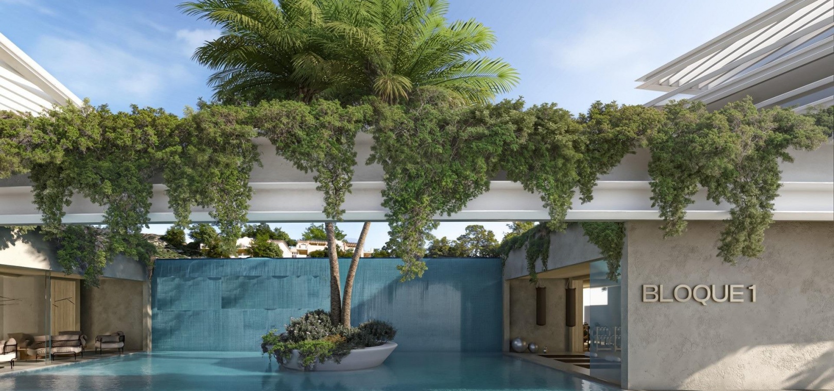 Le complexe résidentiel offre de spacieux espaces communs paysagers conçus pour la détente et le bien-être. Une spectaculaire piscine à débordement crée un effet visuel saisissant en cascade du premier étage au rez-de-chaussée. Les résidents peuvent également profiter d'une salle de sport entièrement équipée, de vestiaires, d'un espace de coworking et d'un parking à vélos, ce qui rend ce complexe idéal pour y vivre à l'année ou pour y passer ses vacances.