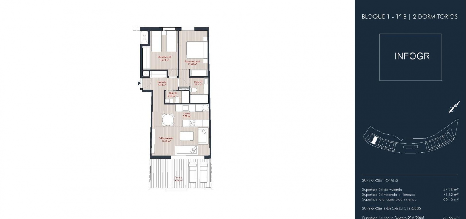 Le complexe se compose de deux élégants bâtiments en forme de croissant, chacun comprenant 32 logements répartis sur quatre niveaux : rez-de-chaussée, premier étage, deuxième étage et penthouses. Le projet propose une sélection de logements de 2 et 3 chambres à coucher adaptés à différents styles de vie. Certaines unités offrent une vue sur la mer. Les propriétés du rez-de-chaussée disposent de jardins privés et de piscines privées, les maisons des étages intermédiaires offrent de grandes terrasses panoramiques et les penthouses comprennent des solariums privés avec vue sur la mer et des piscines privées. Toutes les maisons comprennent au moins une place de parking avec pré-installation pour les véhicules électriques et un débarras privé.