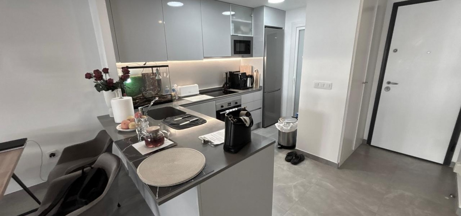 Ce superbe appartement neuf et moderne est situé dans le très prisé Flamenca Village et dispose d'un balcon exposé sud-ouest donnant sur la magnifique piscine. Cette résidence de standing offre des prestations exceptionnelles, notamment quatre piscines (dont une chauffée), une salle de sport entièrement équipée, des promenades paysagées et un bar de piscine, créant ainsi un cadre de vie digne d'un resort. L'appartement est entièrement équipé et prêt à emménager, vendu meublé et climatisé. Dès l'entrée, un hall mène à une pièce de vie lumineuse et spacieuse comprenant un salon, un coin repas et une cuisine moderne. De larges baies vitrées coulissantes s'ouvrent sur un généreux balcon de 19 m², idéal pour les repas en plein air et la détente. Depuis la pièce de vie, un couloir dessert les deux chambres, une salle de bains familiale et un grand débarras. La chambre principale bénéficie d'une salle de bains privative et d'un accès direct au balcon par des portes coulissantes. Ce bien clé en main est idéal comme résidence principale, résidence secondaire ou investissement dans l'un des programmes immobiliers les plus recherchés de la Costa Blanca.