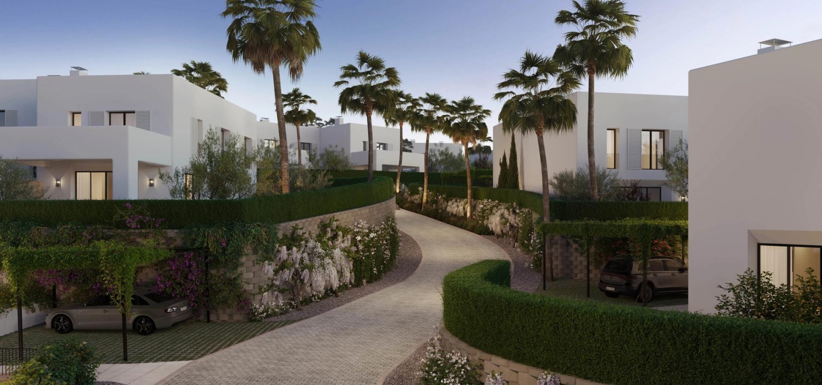 Le complexe propose trois types de logements soigneusement conçus, tous répartis sur deux étages et comprenant deux places de parking privées par maison.