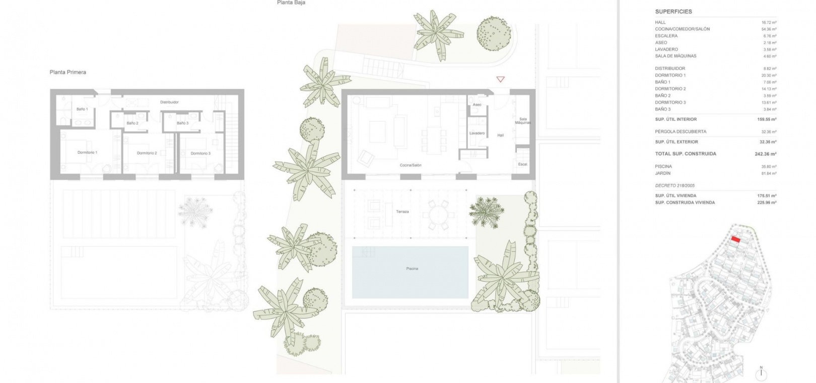 Toutes les maisons sont construites selon les normes de qualité et de confort les plus élevées. Elles sont équipées d'un chauffage au sol et d'une climatisation alimentée par l'énergie aérothermique, de cuisines entièrement équipées, de systèmes domotiques avancés et d'une climatisation intelligente Airzone. Des panneaux photovoltaïques sont installés pour l'autoconsommation, améliorant l'efficacité énergétique et la durabilité.