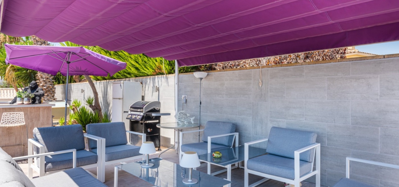 Pour les amateurs de réceptions, la villa offre un espace extérieur dédié qui sublime les réceptions. Doté d'un bar élégant et d'un espace dédié à la convivialité, il offre un cadre idéal pour recevoir. Qu'il s'agisse d'un barbecue animé ou d'une soirée intime entre amis, cet espace soigneusement conçu garantit un moment mémorable et une sophistication naturelle.