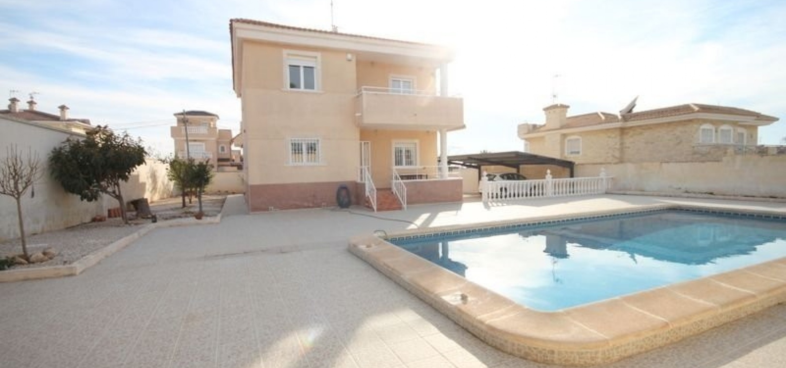 Situé dans un endroit calme et agréable, toutes les commodités sont à proximité et accessibles à pied. À proximité, vous trouverez le complexe sportif avec salle de sport, le marché du vendredi, le parc aquatique et le centre commercial Habaneras. Des transports en commun desservent également les environs, ainsi qu'Alicante et Carthagène. Plusieurs plages sont accessibles à pied en environ 30 minutes.