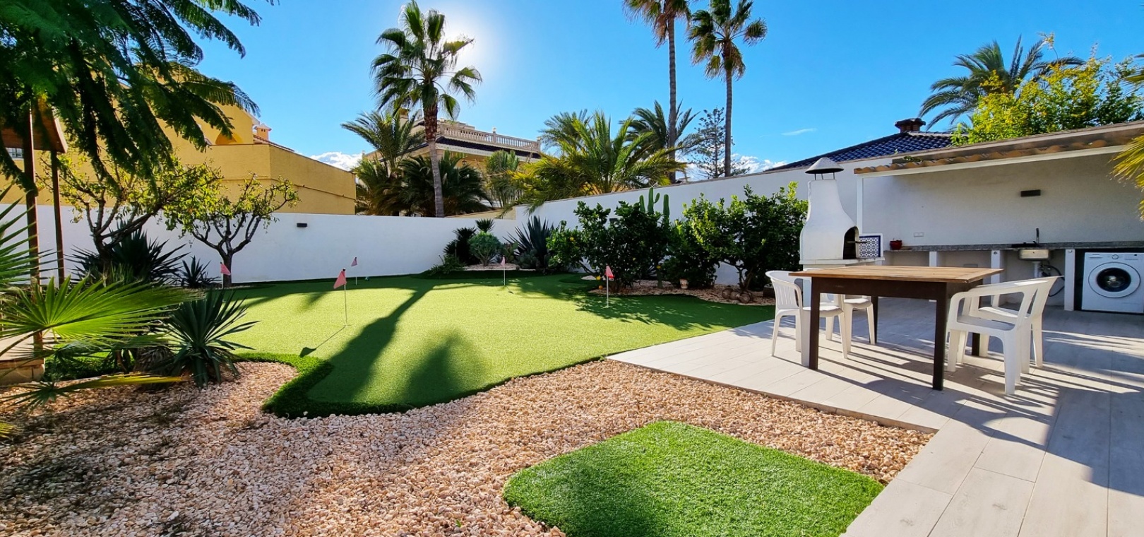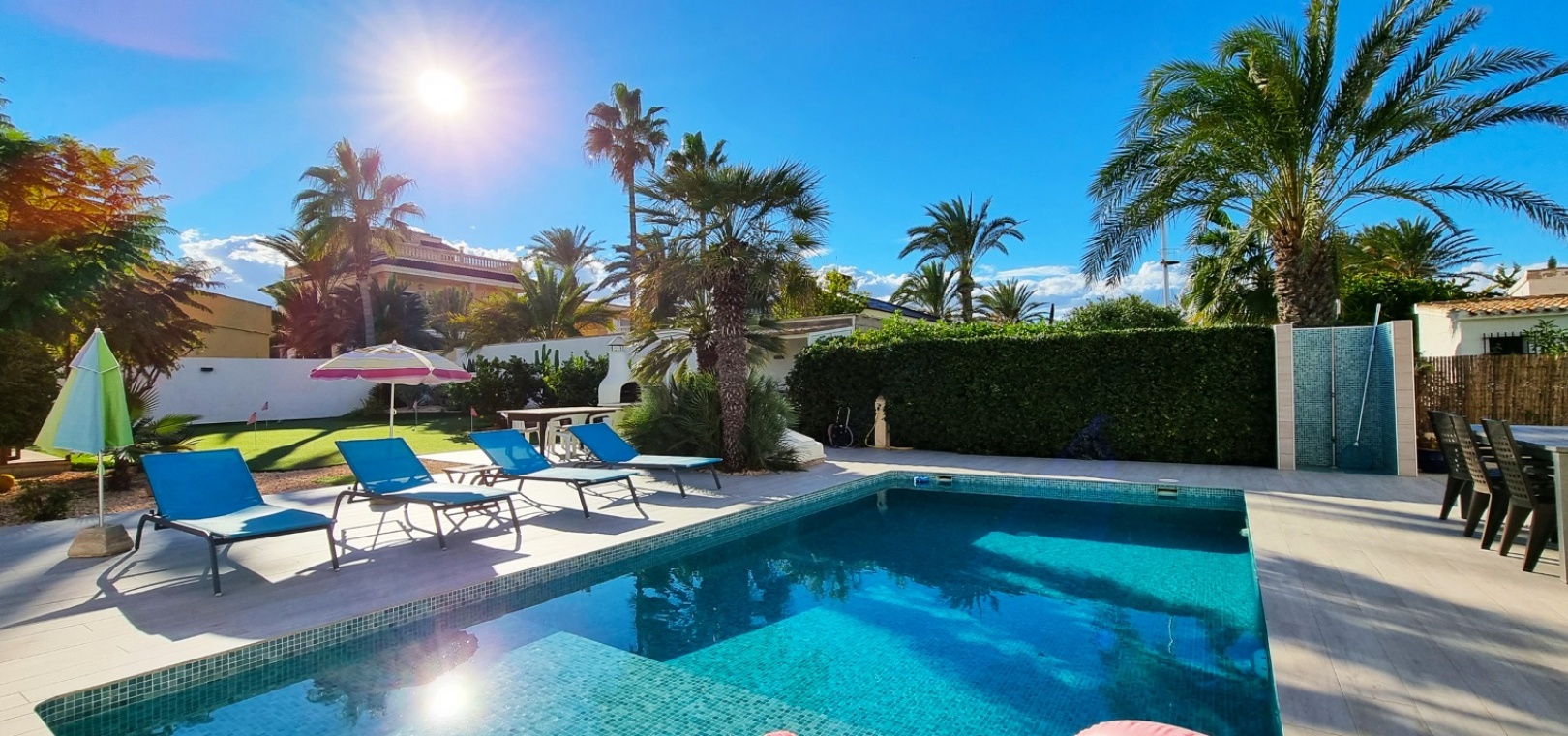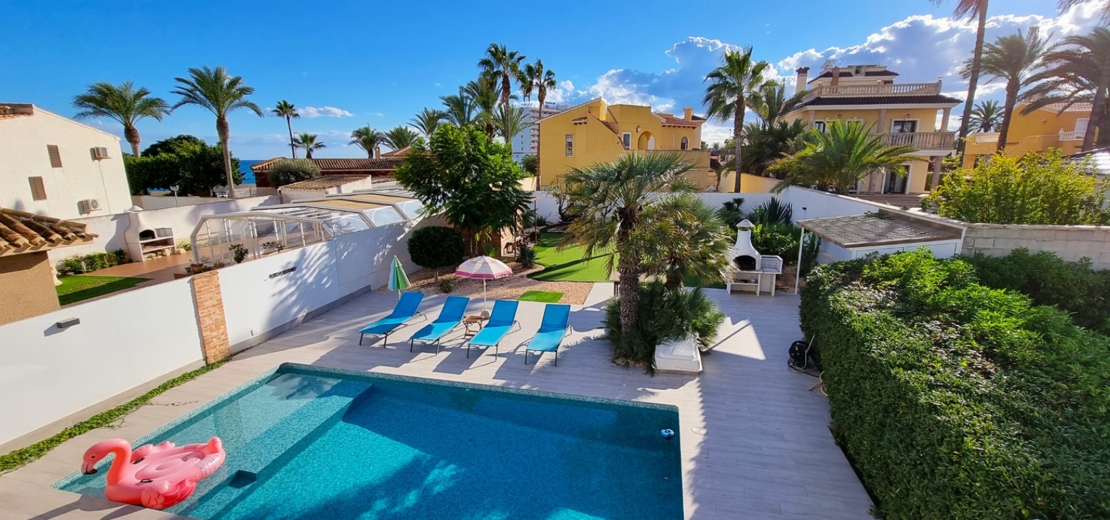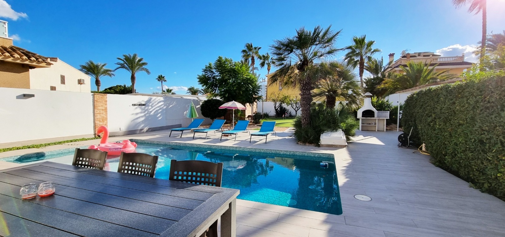 Une villa individuelle récemment rénovée de 4 chambres et 3 salles de bains avec piscine privée située à seulement 100 m de la plage de Playa Flamenca, Costa Blanca Sud.