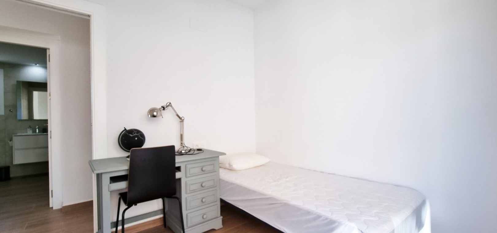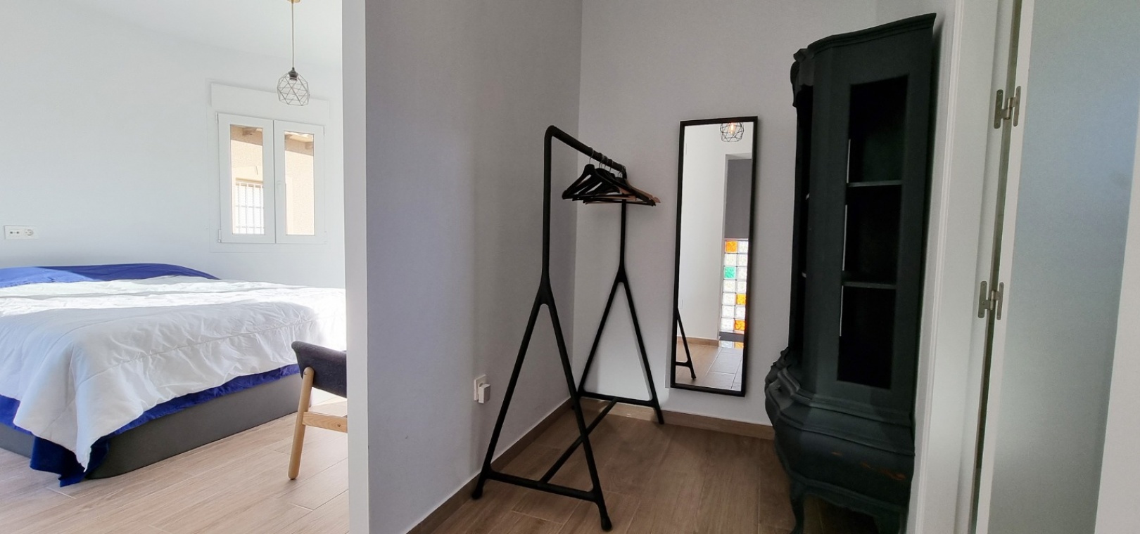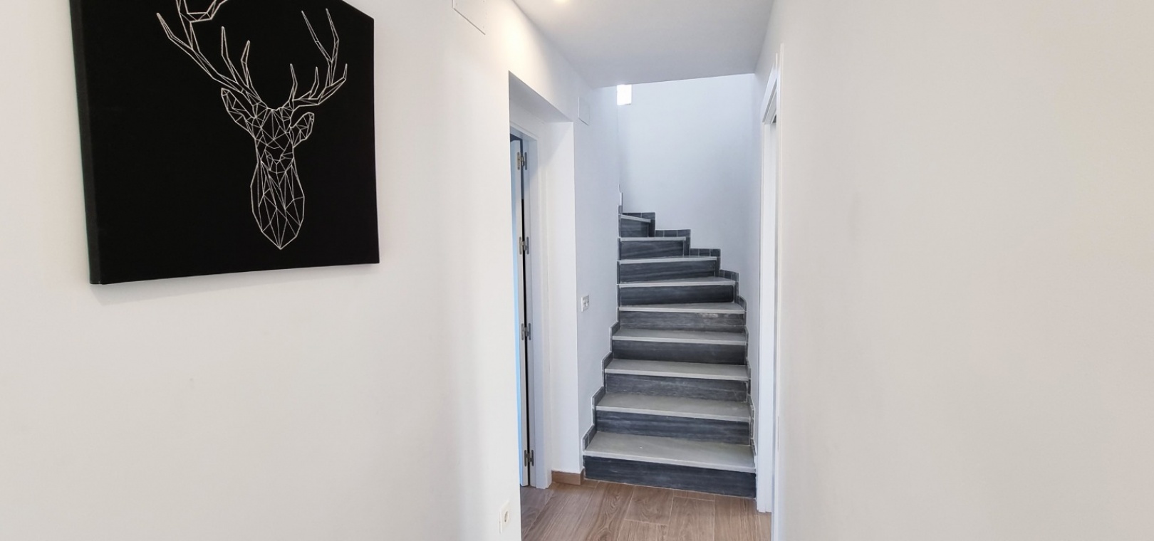 Au 1er étage se trouve la grande chambre double principale, la salle de douche, le grand balcon et un solarium privé sur le toit.