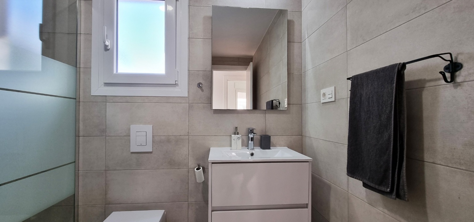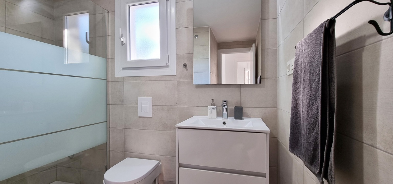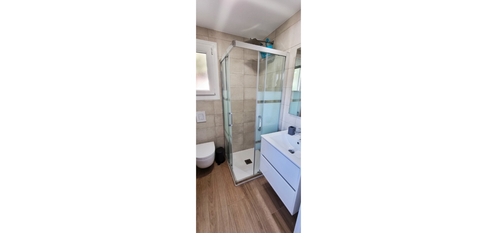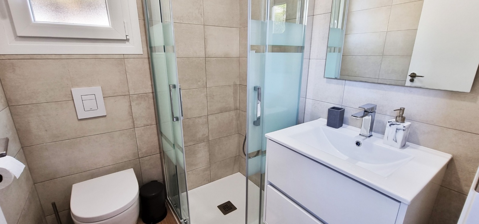 Au 1er étage se trouve la grande chambre double principale, la salle de douche, le grand balcon et un solarium privé sur le toit.
