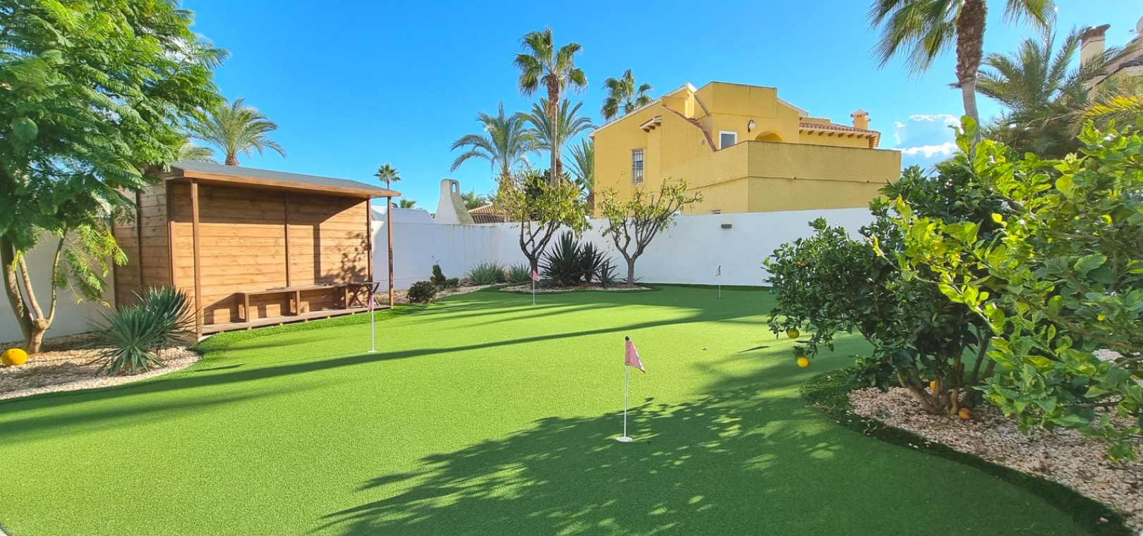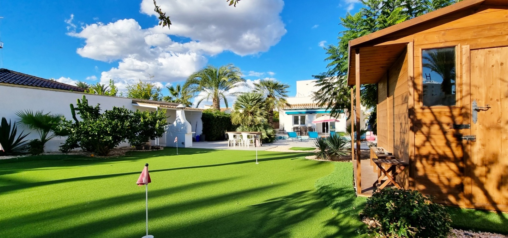 À l'extérieur, il y a un grand jardin avec une piscine privée, une cuisine extérieure avec un espace barbecue, un chip et un putting green, un abri à outils et un parking hors route.