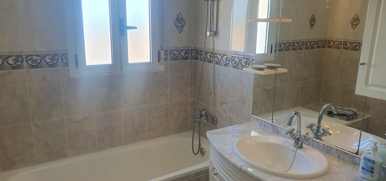 La villa dispose de quatre chambres doubles et de quatre salles de bains, offrant un espace généreux pour la détente et l'intimité. Le séjour ouvert est idéal pour recevoir, tandis que les intérieurs entièrement meublés créent une atmosphère chaleureuse et accueillante. La propriété dispose également d'un sous-sol et d'un garage double. Le sous-sol est actuellement utilisé comme buanderie.