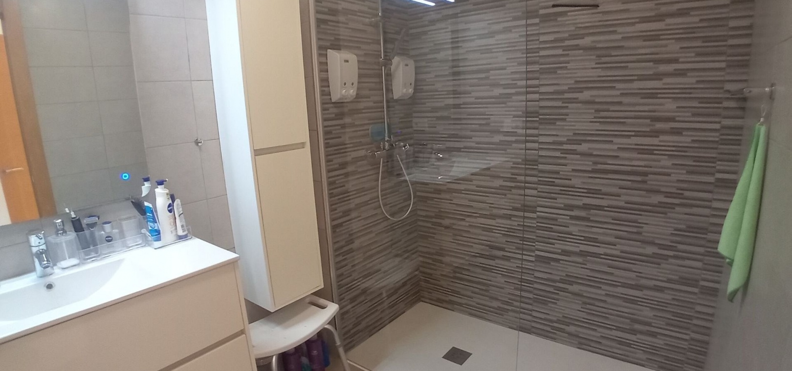 Il y a un abri couvert pour 2 voitures ainsi qu'un espace non couvert pour plus de voitures ou même un camping-car.