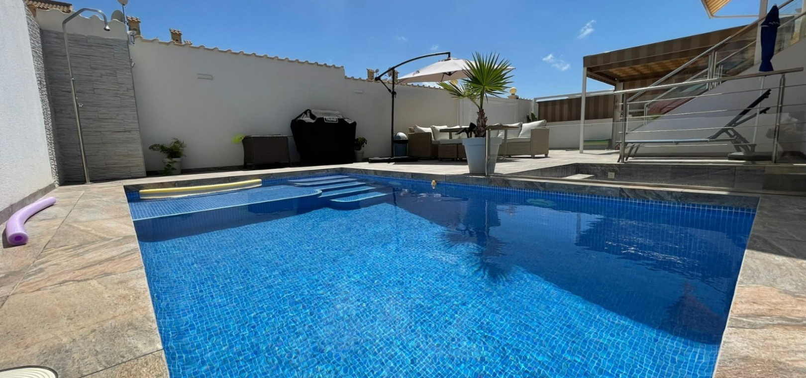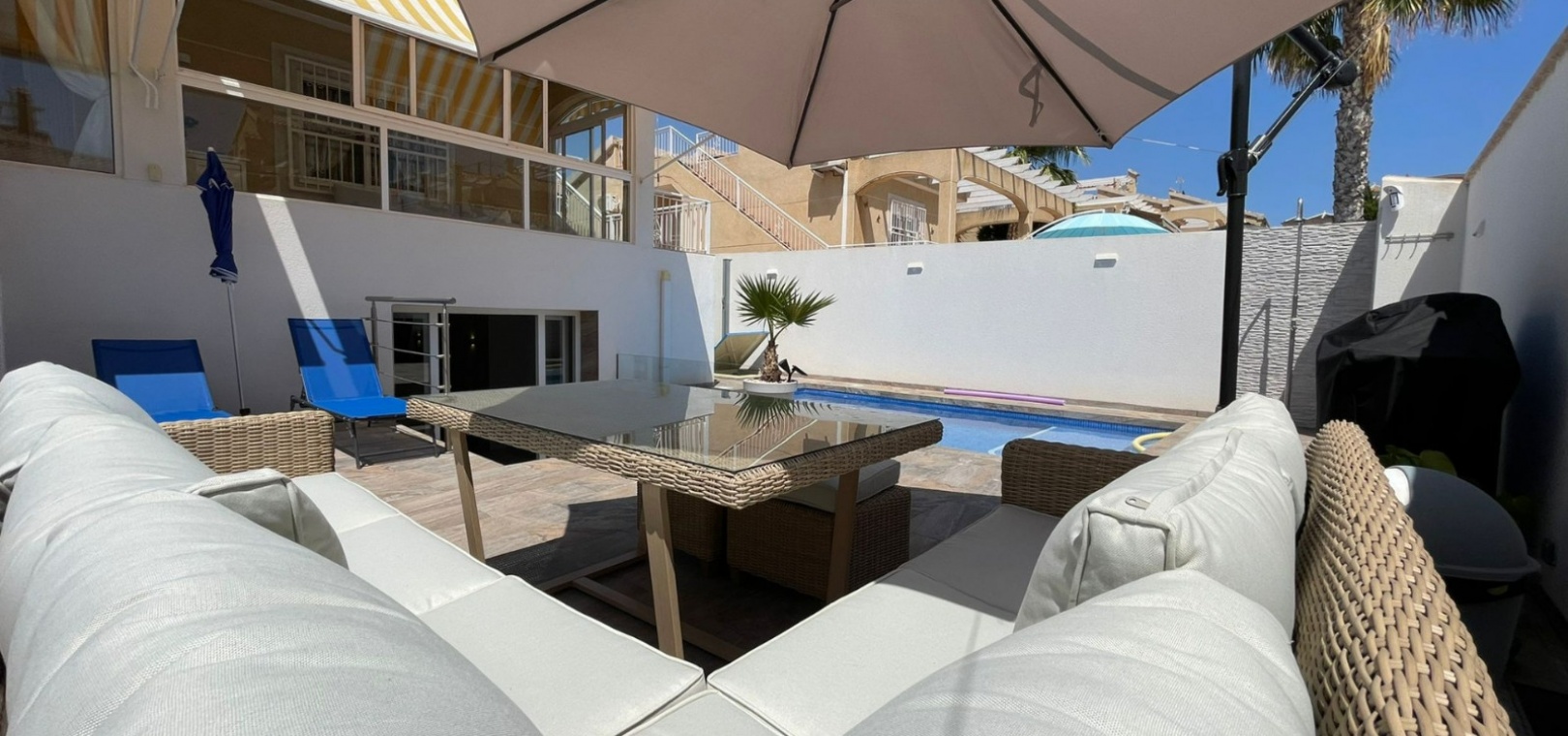Une villa individuelle de 3 chambres et 3 salles de bain orientée plein sud avec piscine privée située à Los Altos, Costa Blanca.