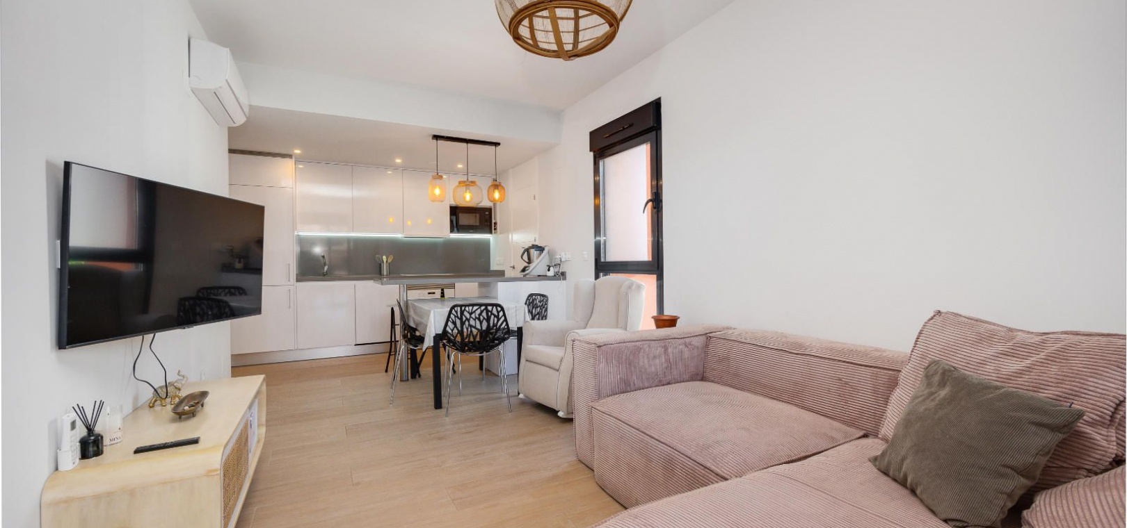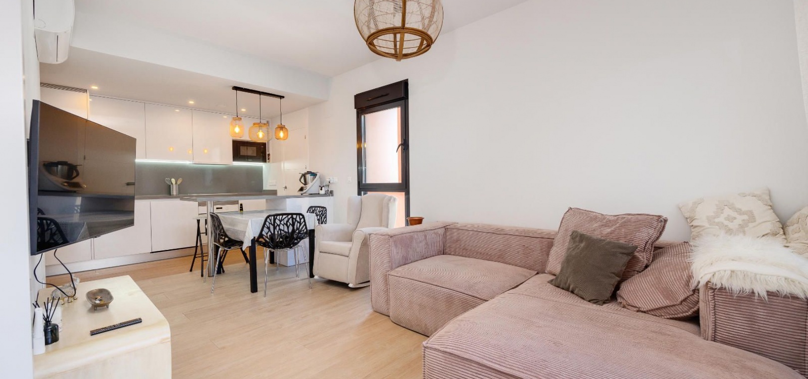 L'appartement comprend deux chambres spacieuses et deux salles de bain complètes. Son orientation est inonde l'intérieur de lumière naturelle dès le matin, créant des espaces chaleureux et accueillants. L'un de ses atouts majeurs est son impressionnante terrasse de 35 m², idéale pour dîner en plein air, recevoir des invités ou simplement profiter du soleil.