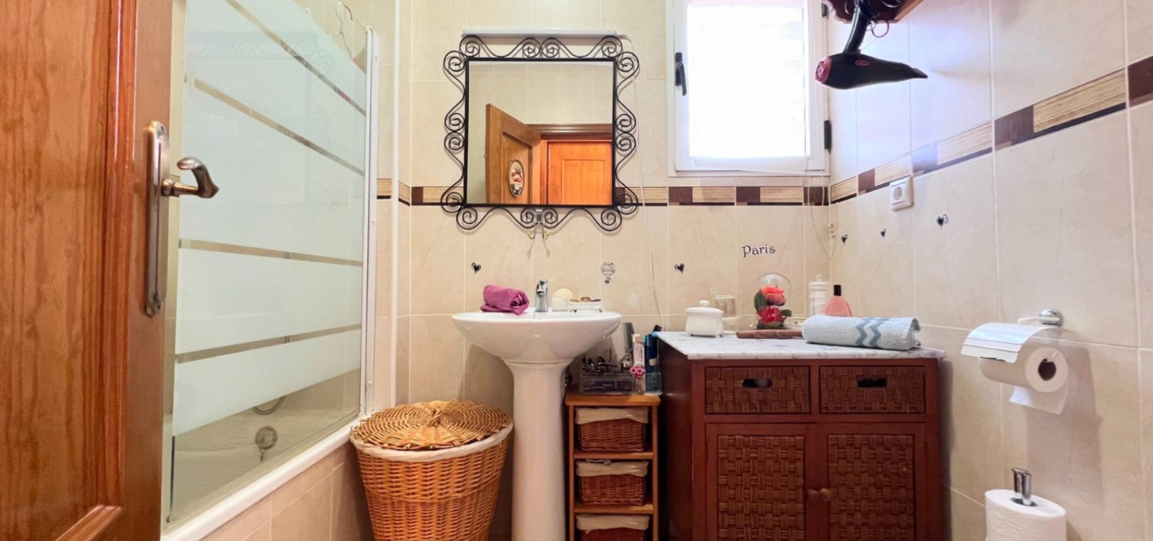 À l'intérieur, vous trouverez un salon-salle à manger lumineux et spacieux , une cuisine séparée entièrement équipée , deux chambres doubles et deux salles de bains complètes (l'une avec baignoire et l'autre avec douche). Pour un confort optimal en toute saison, la maison est équipée de deux climatiseurs chaud/froid .