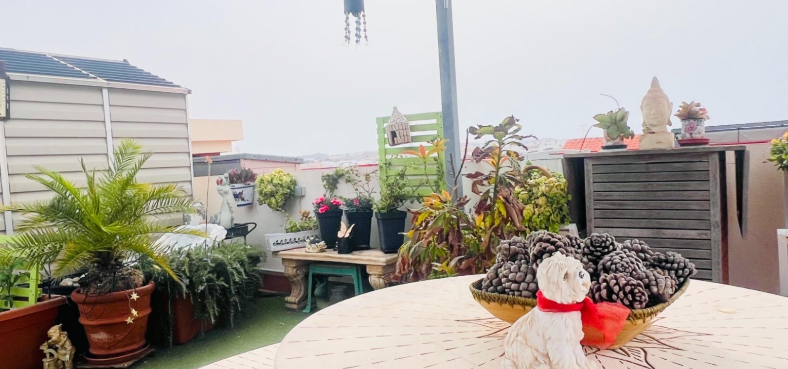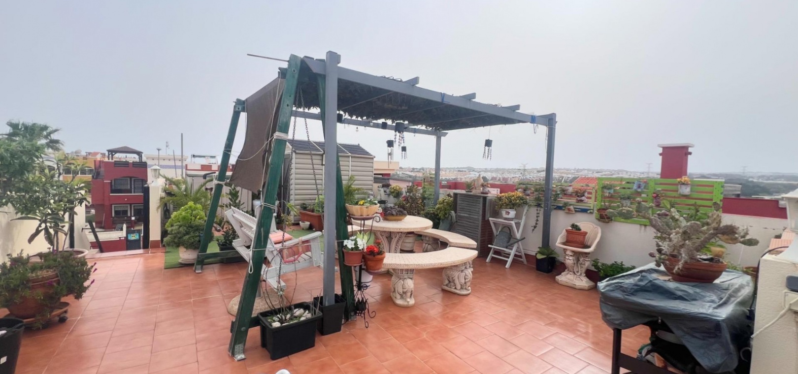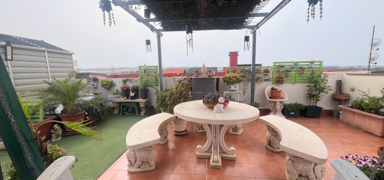 La propriété dispose d'une grande terrasse avant et d'un impressionnant solarium privé de la taille de la maison , avec une pergola et la possibilité d'installer un jacuzzi (coût supplémentaire) - une retraite parfaite pour bronzer, se divertir ou se détendre toute l'année.