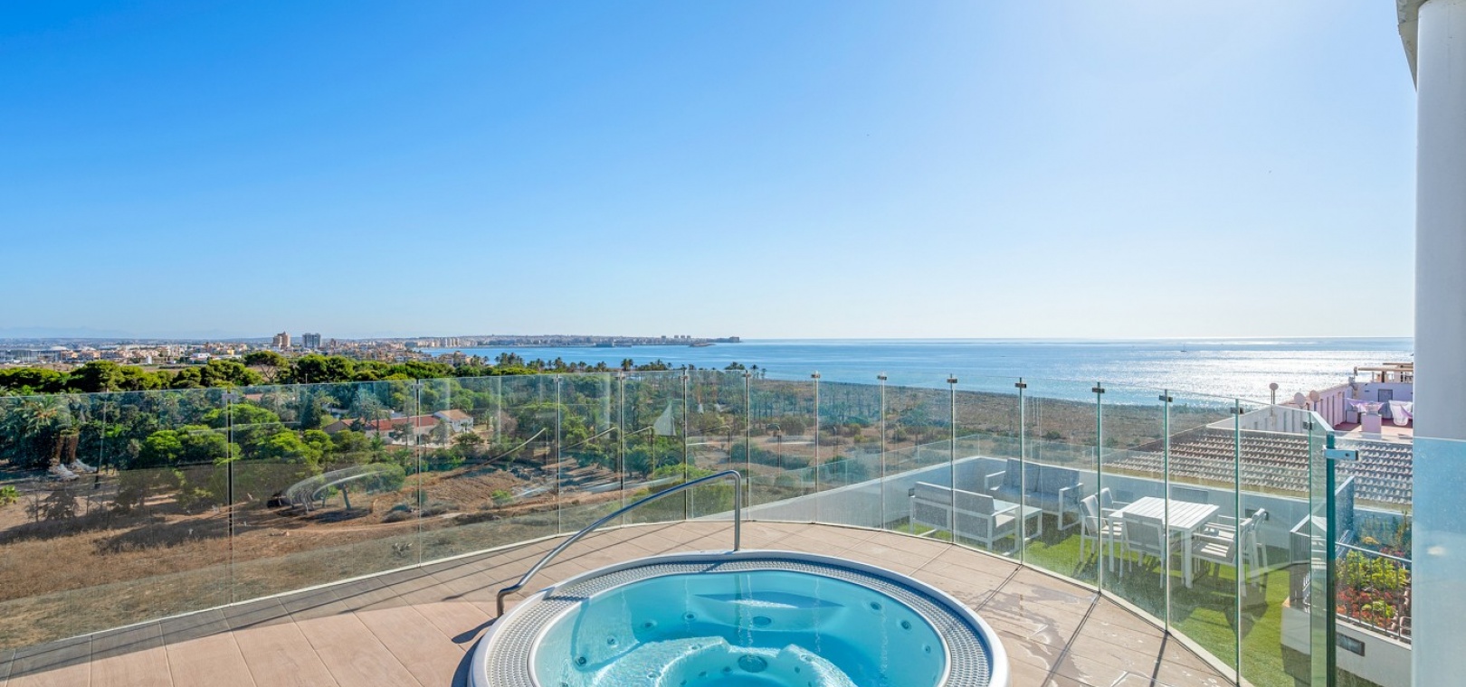 Construit en 2024, ce superbe appartement offre une vue panoramique sur la mer et le port de Torrevieja, à seulement 300 mètres du littoral et à quelques pas des commerces, des restaurants et des commodités essentielles.
