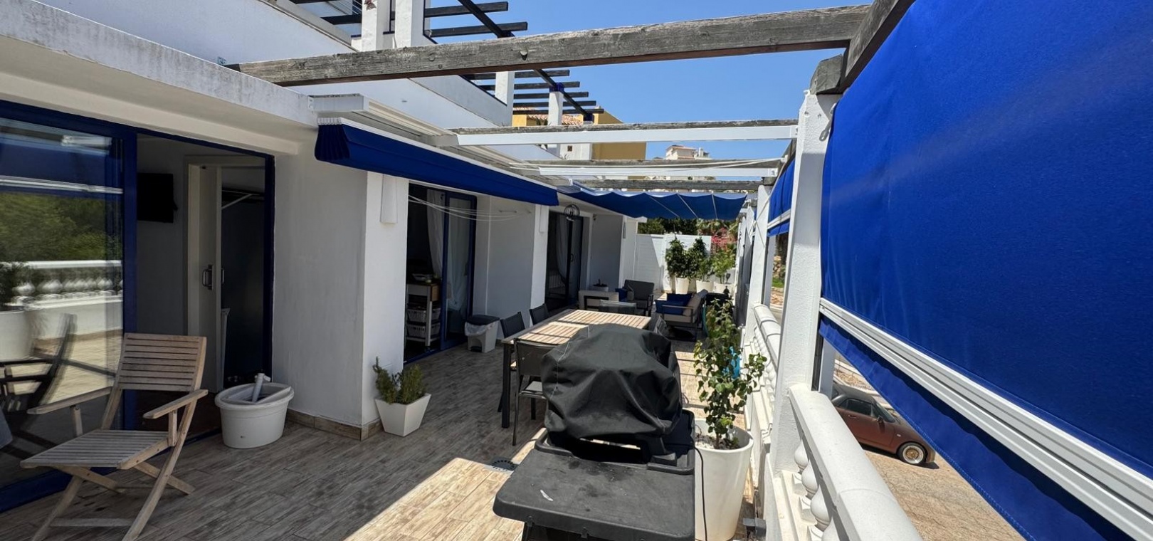 Cet appartement de style Claveles, magnifiquement entretenu, offre de généreux espaces de vie intérieurs et extérieurs en parfait état. Idéal pour profiter du soleil espagnol et de la tranquillité du quartier, il dispose d'une grande terrasse sur toute la longueur avec vue imprenable sur le prestigieux parcours de golf de Las Ramblas.
