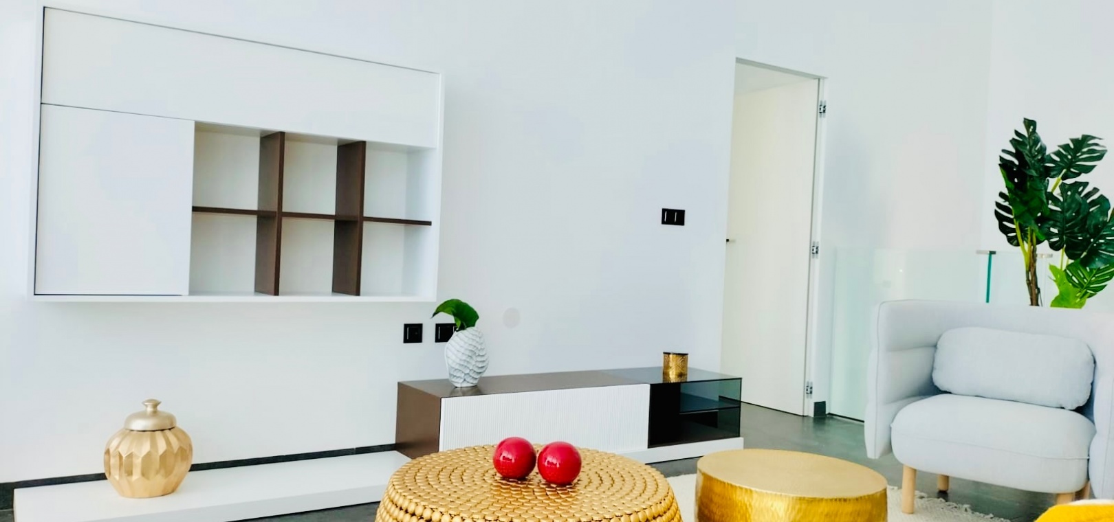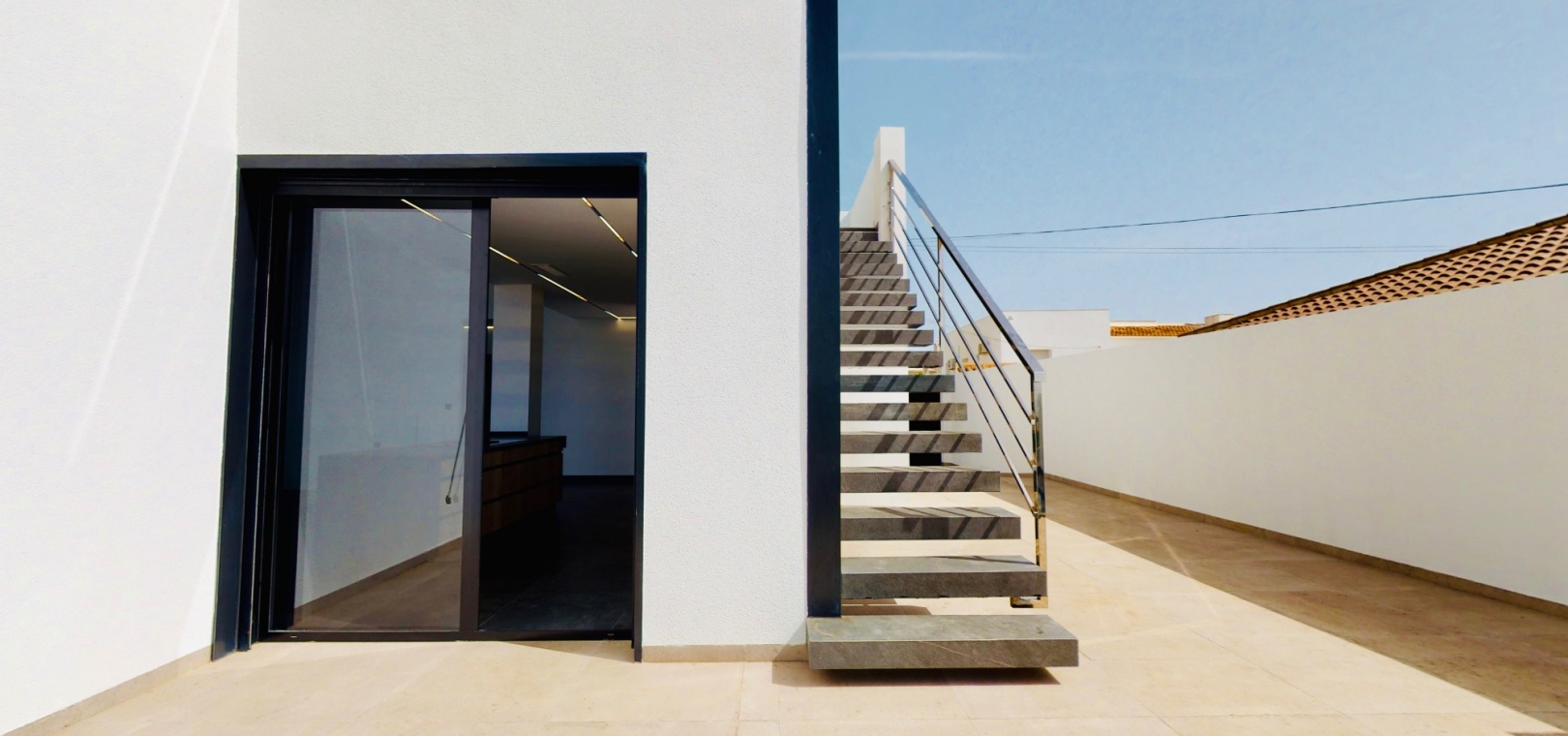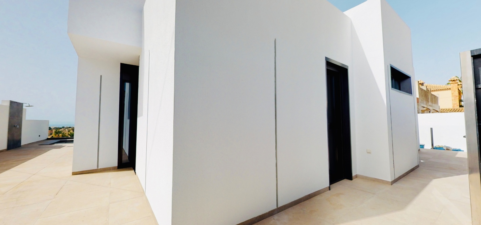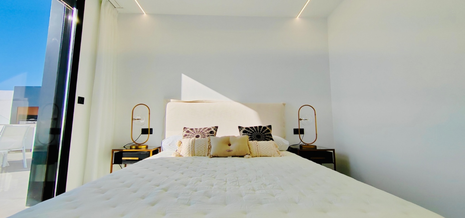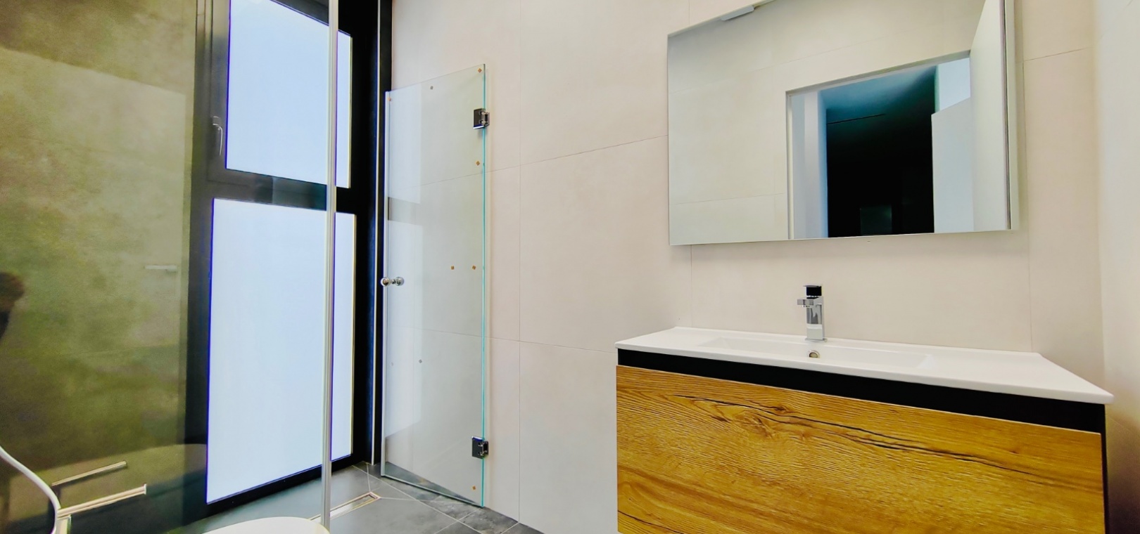 À l'intérieur, la villa comprend trois chambres spacieuses et trois salles de bains modernes , toutes dotées de finitions haut de gamme. La chambre principale dispose d'un élégant dressing , tandis que les autres chambres sont dotées de grands placards intégrés offrant un vaste espace de rangement.