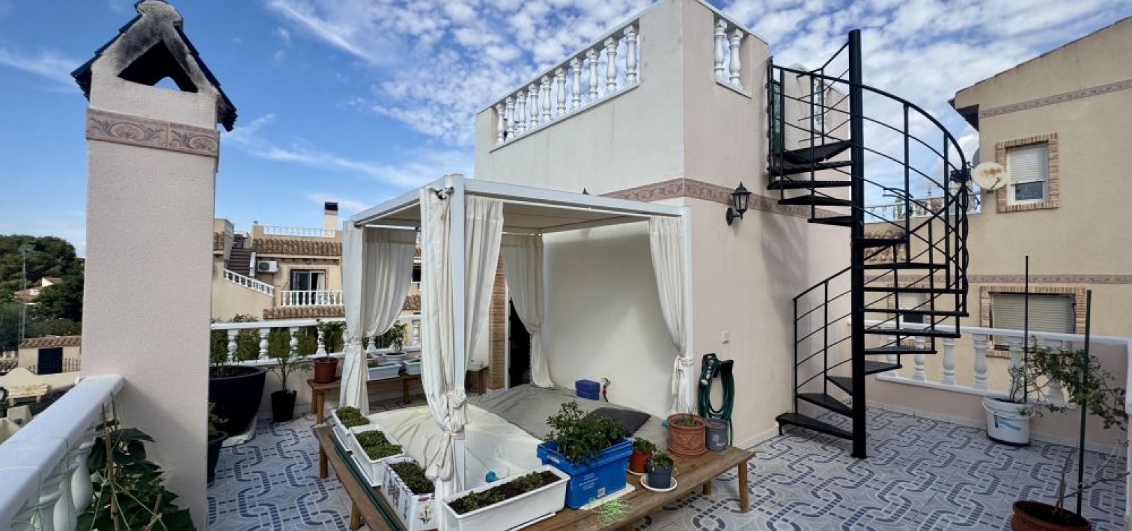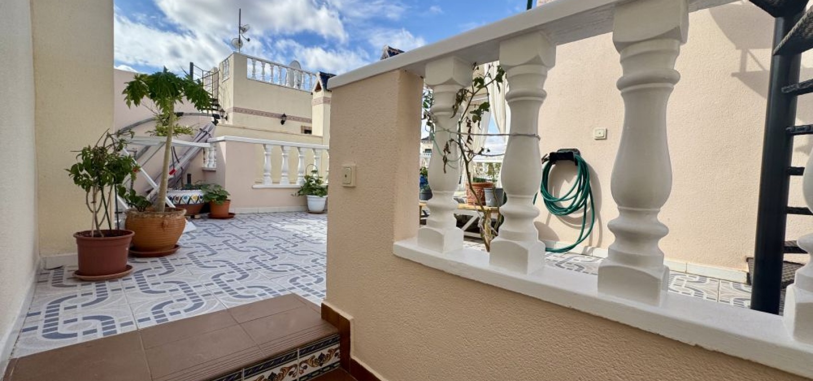 2 chambres et 1 salle de bain au rez-de-chaussée Une troisième chambre avec sa propre salle de bains privative à l'étage, située sur le solarium privé et bénéficiant d'un accès indépendant. Une terrasse spacieuse , idéale pour profiter du climat fantastique Un grand solarium privé avec un espace supplémentaire pour se détendre ou accueillir des invités