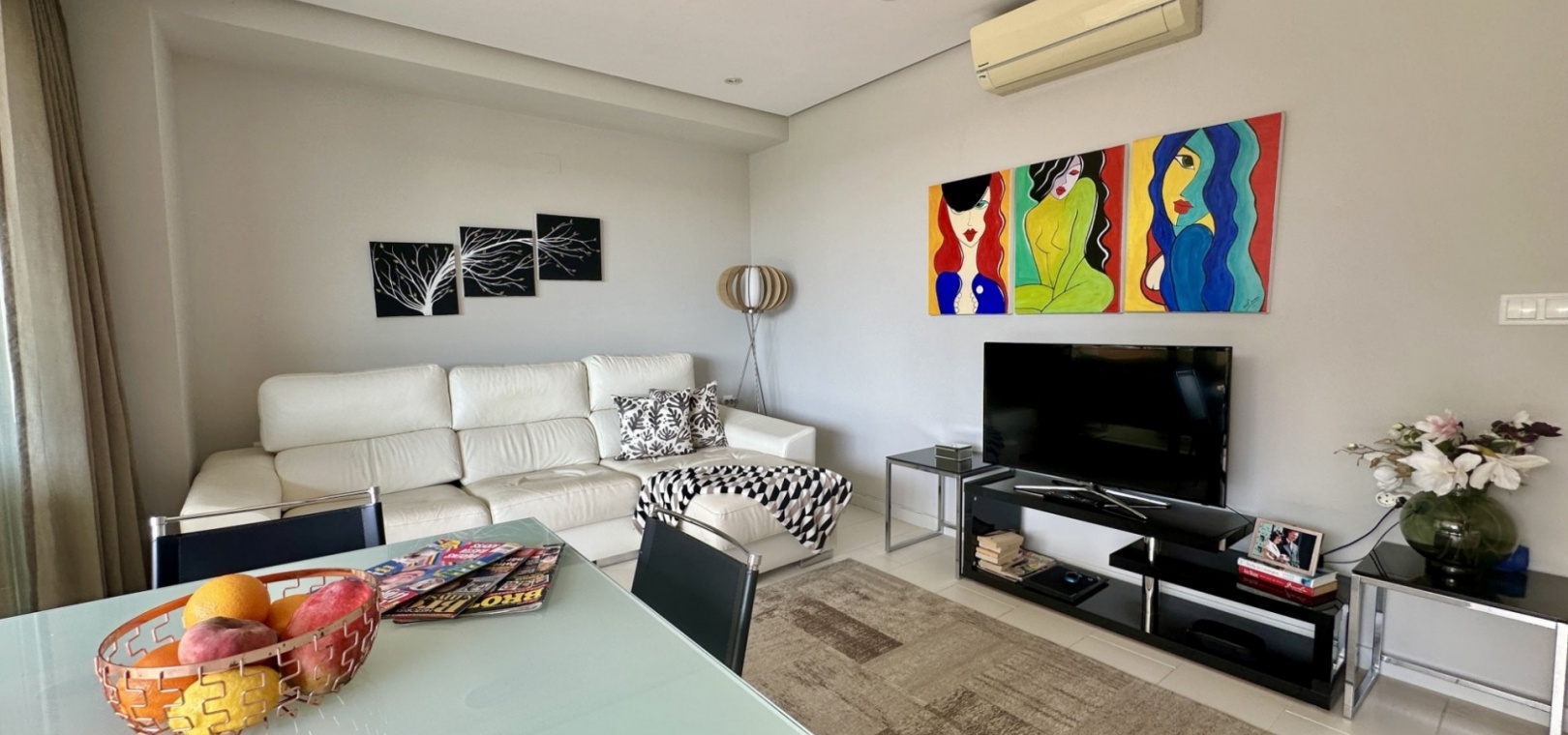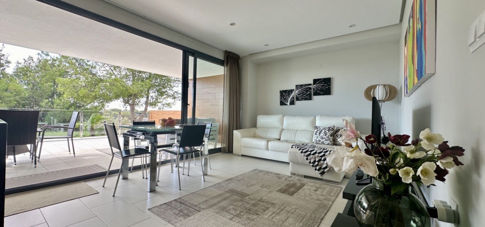 Nous sommes ravis de vous présenter ce superbe appartement de plain-pied, parfaitement entretenu, situé au cœur de Villamartín, l'un des quartiers les plus prisés d'Orihuela Costa. Prêt à emménager et baigné de lumière naturelle, ce logement de 2 chambres et 2 salles de bains offre confort, design moderne et un agréable espace de vie extérieur.