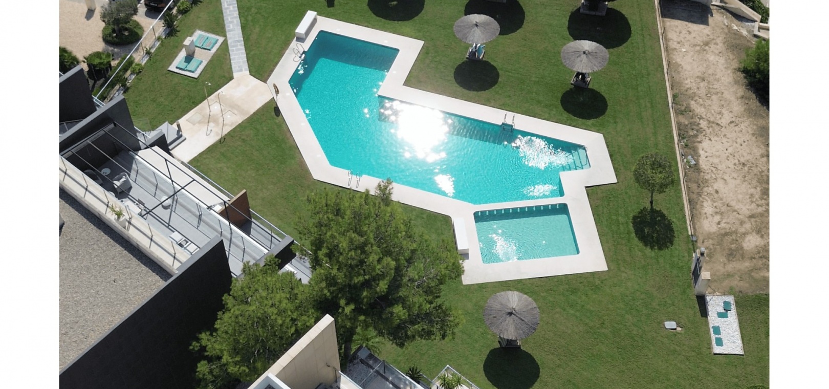 Construit en 2013 avec un design contemporain Bâtiment écoénergétique certifié Résidence sécurisée avec ascenseur Garage privé inclus Belle piscine commune et jardin